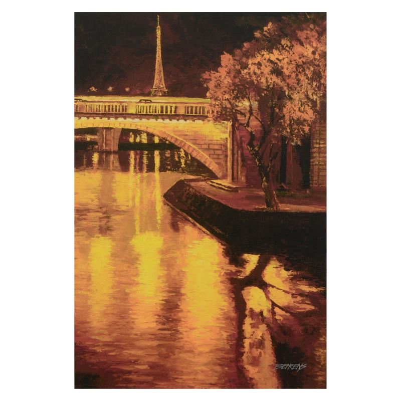 "Twilight On The Seine I" is a limited edition giclee on canvas by Howard Behrens (1933-2014), numbered and bearing the authorized signature of the artist. This piece is from Behrens' Legacy Edition. Includes Certificate of Authenticity. Measures approx. 18" x 27" (image).