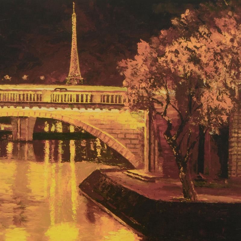 "Twilight On The Seine I" is a limited edition giclee on canvas by Howard Behrens (1933-2014), numbered and bearing the authorized signature of the artist. This piece is from Behrens' Legacy Edition. Includes Certificate of Authenticity. Measures approx. 18" x 27" (image).