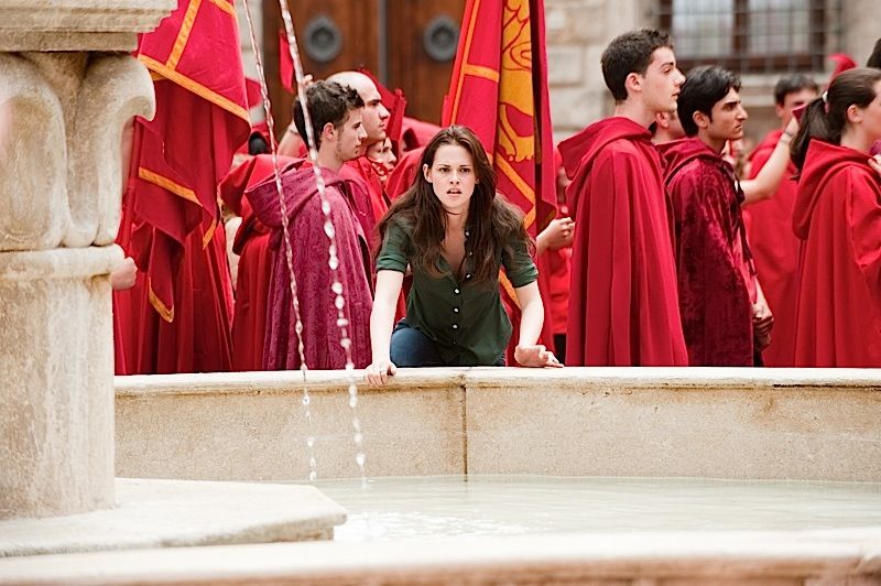 (Summit Entertainment, 2009) This red robe was acquired by the production for use by various actors as part of the Volturi Vampire Clan. The full length robe has an attached hood and remains in very good condition.