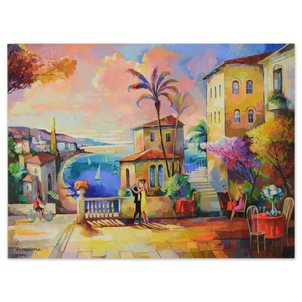 Twilight Time In Italy by Grinshpun Original. "Twilight Time In Italy" is an original oil painting on stretched canvas by Alex Grinshpun, hand signed by the artist. Includes Letter of Authenticity. Measures approx. 16" x 20" (image).