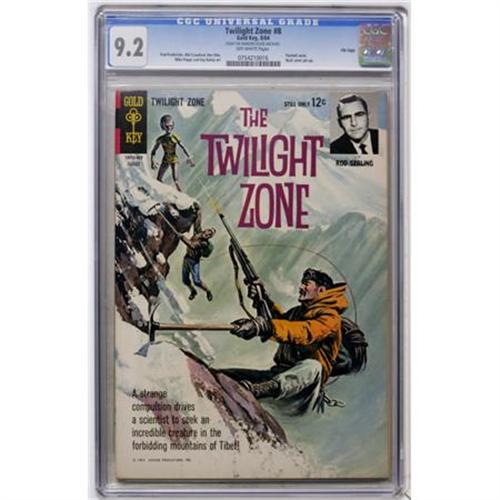 <B>Twilight Zone #8 File Copy (Gold Key, 1964) CGC NM- 9.2 Off-white pages.</B></I> Painted cover. Back cover pin-up. Fred Fredericks, Mel Crawford, Ben Oda, Mike Peppe, and Ray Bailey art. CGC notes, "From the Random House Archives." Overstreet 2007 NM- 9.2 value = $90. CGC census 9/07: 1 in 9.2, none higher.<BR><BR><b>Shipping:</b> Comics - Slabbed (certified) (<a target="_blank" href="http://www.heritageauctions.com/common/shipping.php">view shipping information</a>)