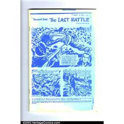 Twilight Zone #94 (Gold Key, 1963). This is the unpublished blue line proof copy of Twilight Zone #94 with art by Alex Toth. As a publisher's proof, this is the only existing copy of this book...the only one. If you want to read this story, then this is your only option; it has never been reprinted in any format. If you are a Toth fan, then this book is a must-have. It is a beautiful copy with fresh, white pages, but a faint book-length crease makes the grade top out at FN+. As is common with these blue line proofs, there is a roll to the spine and a few staple holes on some interior page edges; this copy is about as nice as they come, though...and it is the only one ever printed. This book is not listed in Overstreet, and most people don't even know that it exists. Important notice: We expect to be auctioning lots at the rate of 200-250 per hour. Sometimes eBay Premier live bid software cannot keep up with that pace, so we strongly recommend that you place a realistic proxy bid now as insurance to avoid disappointment. Also please note that all Heritage/CAA lots purchased through eBay Premier carry a 20% Buyer's Premium.
