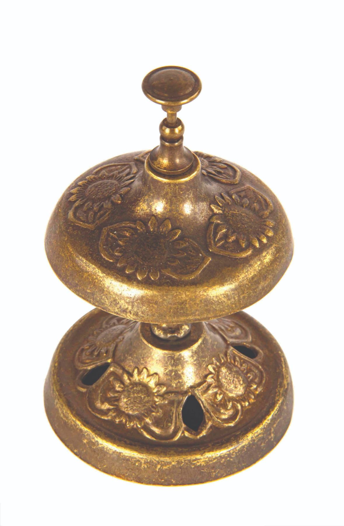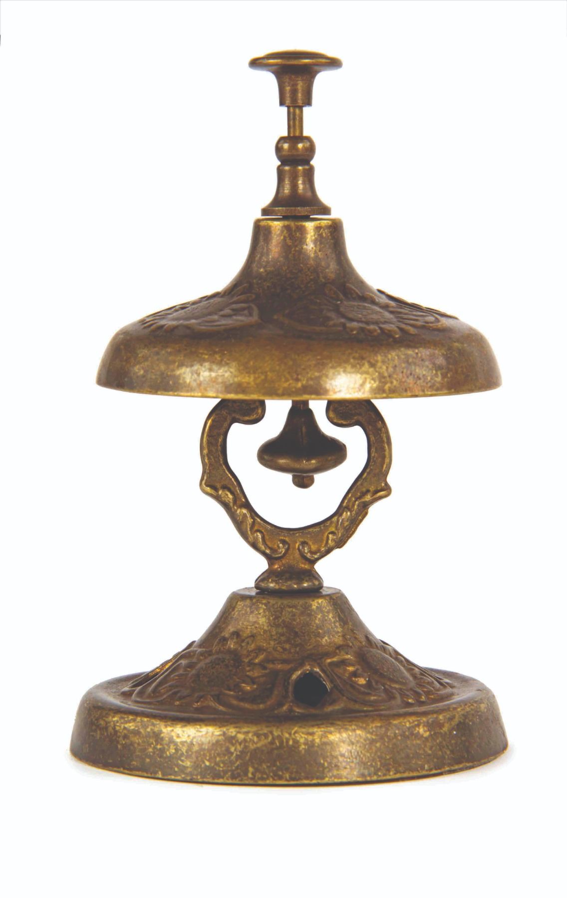 (California Adventure, 2004) A metal call bell given exclusively at the preview event for California Adventure's Twilight Zone Tower of Terror. The bell is fully functional, with a clapper beneath the upper dome and a small plaque on the underside with the Hollywood Tower Hotel insignia and the event date. Measuring approximately 5" tall, the bell is in very good condition.