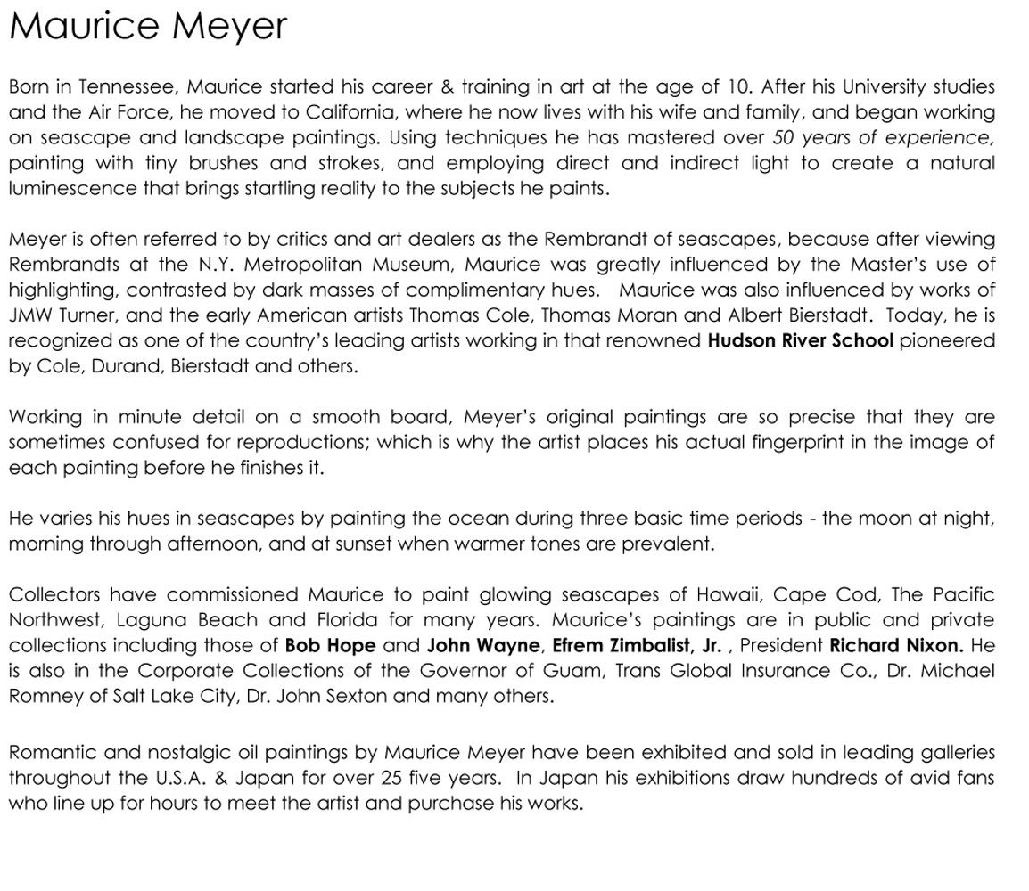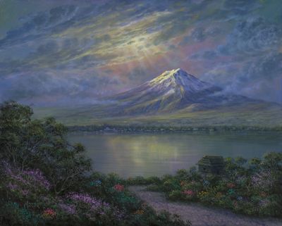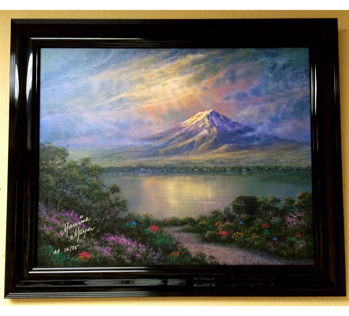 Well-known in Galleries throughout Japan, Maurice Meyer pays homage to the cultural significance of its most sacred mountain , in this signed and numbered limited edition giclee. “Twilight at Fuji” measures 16x20” and it is a signed AP (Artist Proof ) , framed in a minimalist black lacquer molding. Retail is $ 1,000 unframed.
