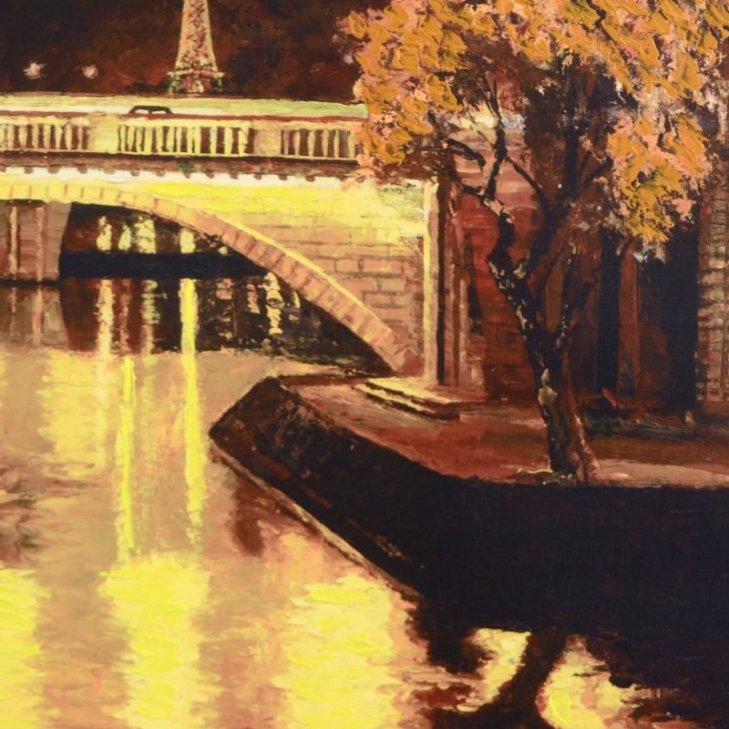 "Twilight on the Seine, I" is a limited edition hand embellished giclee on canvas by Howard Behrens (1933-2014), numbered and hand signed by the artist. Includes Certificate of Authenticity! Measures approx. 17" x 27" (image).