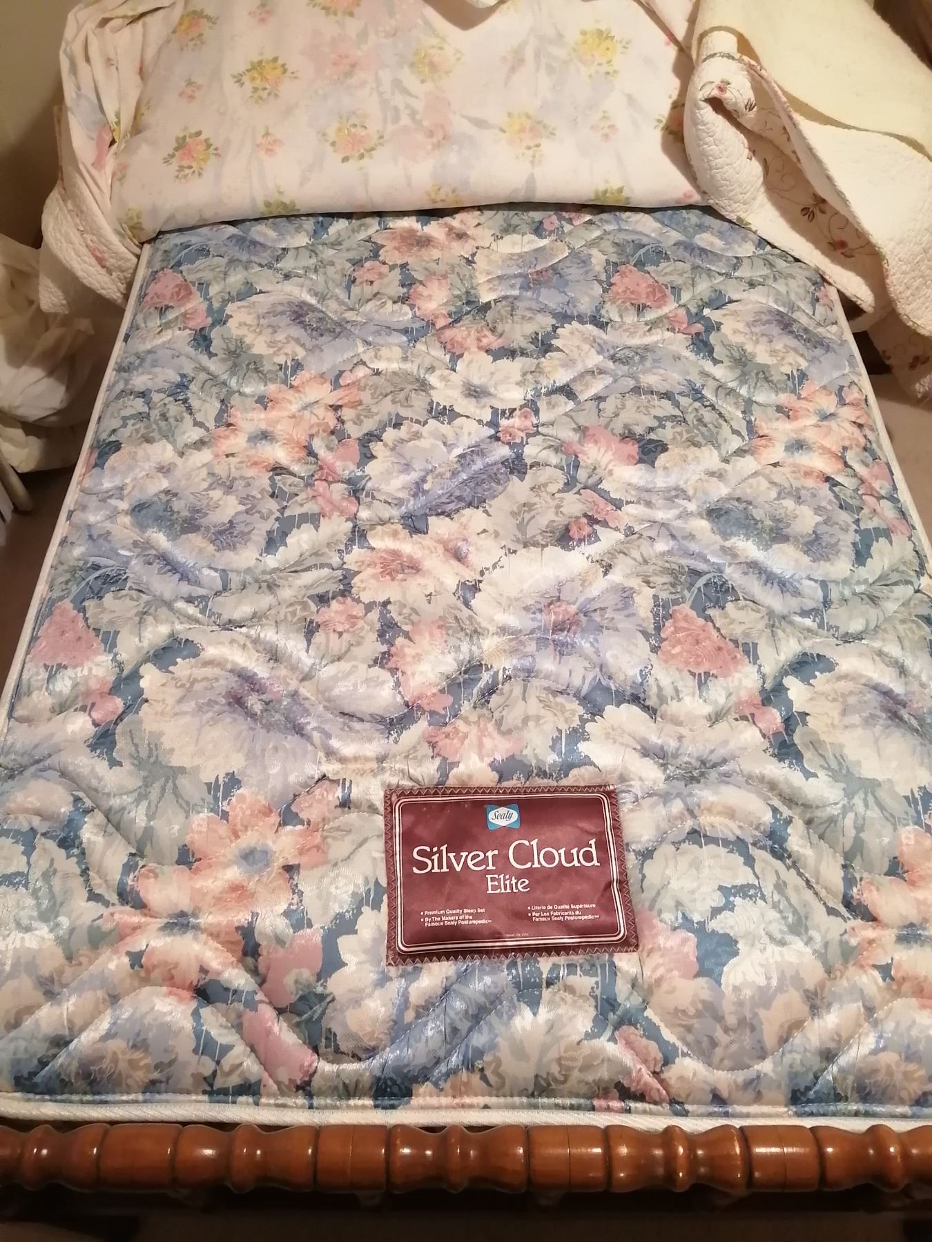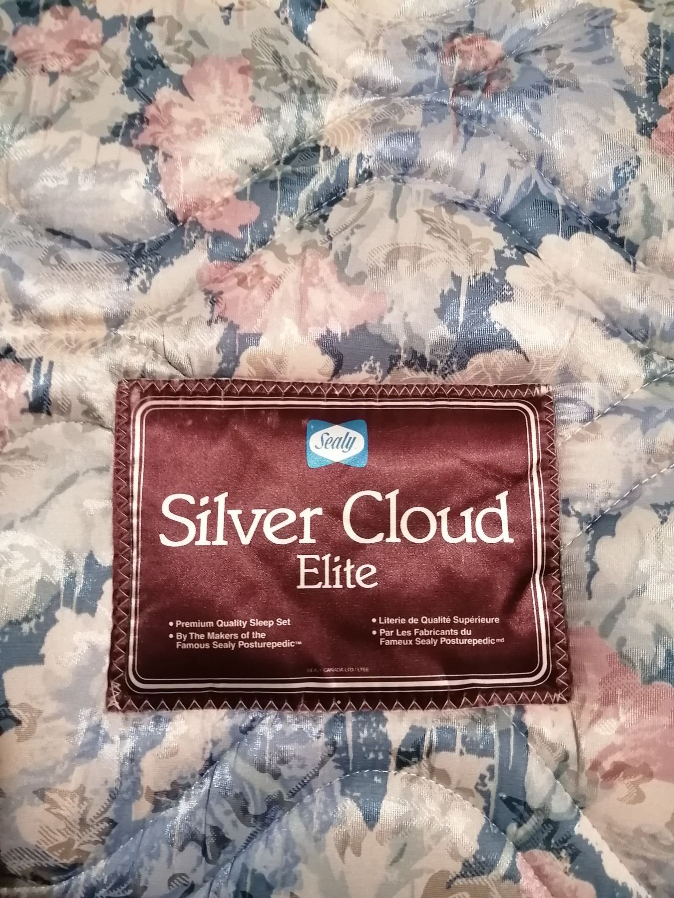 Twin Bed w/ Frame, Box Spring, Sealy Silver Cloud Elite Mattress, Headboard, and Footboard