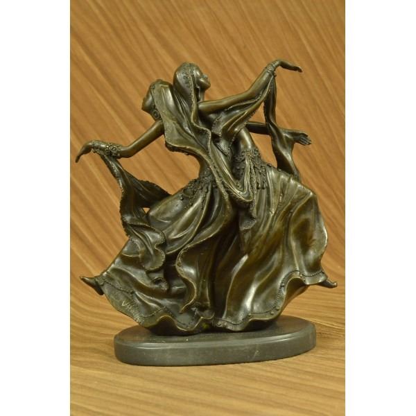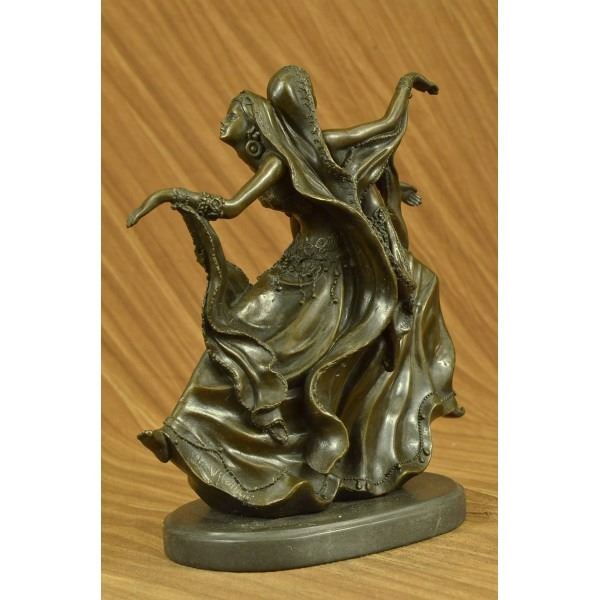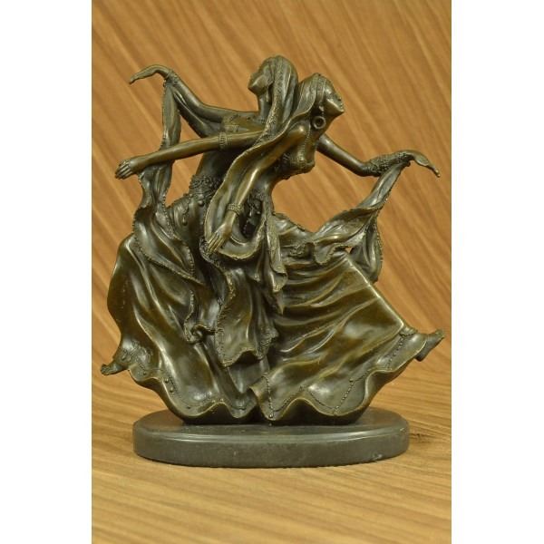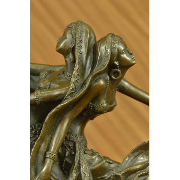 This bronze sculpture of the female twins stands for the Gemini zodiac dual sign. Geminians are curious, versatile, talkative with mental alacrity but being a dual sign has both an up and a down-side. Geminians have a very analytical mind seeing both sides of the image. Geminians may like two things that may be opposite to each other. The Twins are seen in a graceful dance in the cosmos. Side to side and back to the back of each other they mirror each other dance moves in synchrony but stare out in different directions. They were cast using the age-old method of lost wax casting and stained with a brown patina finish for preservation and mounted upon a marble base. Dimensions: Height 11 X Width 10 inches. Weight: 10 LBS.