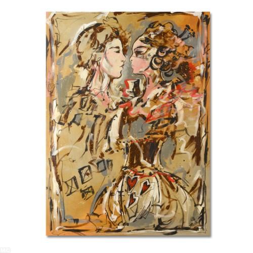 With expressionistic lines that depict movement and grace, Marta Wiley creates works of art that are sure to astound any viewer. "Twin Flames" is an original mixed media painting on stretched canvas, hand signed by Wiley. This piece comes gallery wrapped and ready to hang. Includes Certificate of Authenticity! Measures approx. 30" x 41" (image).
