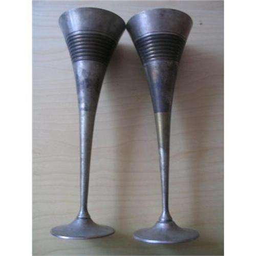 Twin silver Victorian looking wine glasses with etched symmetrical lines around lip. 9.5? tall, 3? lip at top 55