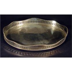 Twin handled oval silver plated tray with pierced gallery, 52cm in length