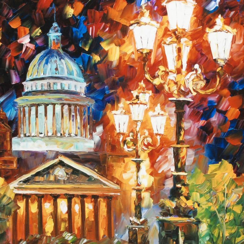 Leonid Afremov's masterful use of color and texture make his paintings unique collectibles that are sure to brighten any wall. "Twinkling of the Night" is a limited edition giclee on stretched canvas, numbered and bearing Afremov's authorized signature. This piece comes gallery wrapped and ready to hang. Includes Certificate of Authenticity! Measures approx. 21" x 21" (image).