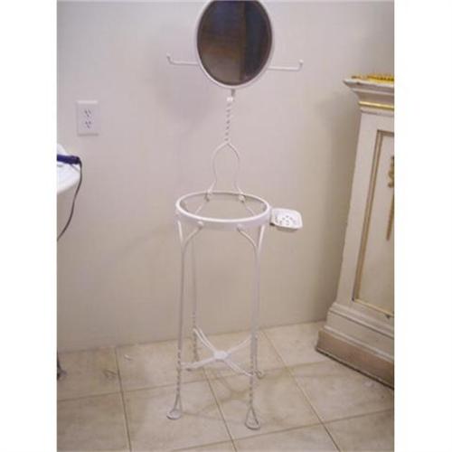 I have had this in my home for a number of years.I purchased it from an old Hotel that was closed.It is in very good condition.Stands 56" tall.It has an attached soap dish with drainer on the right side.Has two arms for towels by the tilt mirror.I have an old enamel bowl that I use in it that is 12" across.The bowl can go with this if you want.These are very hard to come by and the only one I have ever had.Guaranteed old.This can be picked up or I can deliver to a packer shipper at buyers expense.