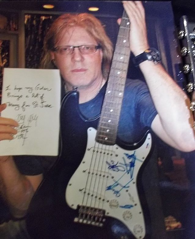 To Benefit St. Jude Children's Research Hospital; This guitar was given to Les Paul in exchange for a "pink" Les Paul signature guitar. Les Paul always loved children and had been a long time supporter of St. Jude Children's Research Hospital. The guitar is signed by members of Twister Sister and is Jay Jay French's guitar. A picture of Jay Jay with the guitar with personal note is included with the guitar. This guitar would make a great Father's Day gift! This guitar is being auctioned to benefit St. Jude Children's Research Hospital. The importance of today's auction is to benefit St. Jude Children's Research Hospital in memorance of Peter W. Chapulis, in memory of him and all dads! We have been collecting for St. Jude Children's Research Hospital since the passing of Peter W. Chapulis. We are proud to announce that we have raised $66,425.00 to date for St. Jude Children's Research Hospital! We thank all of our loyal customers for helping to make this happen!