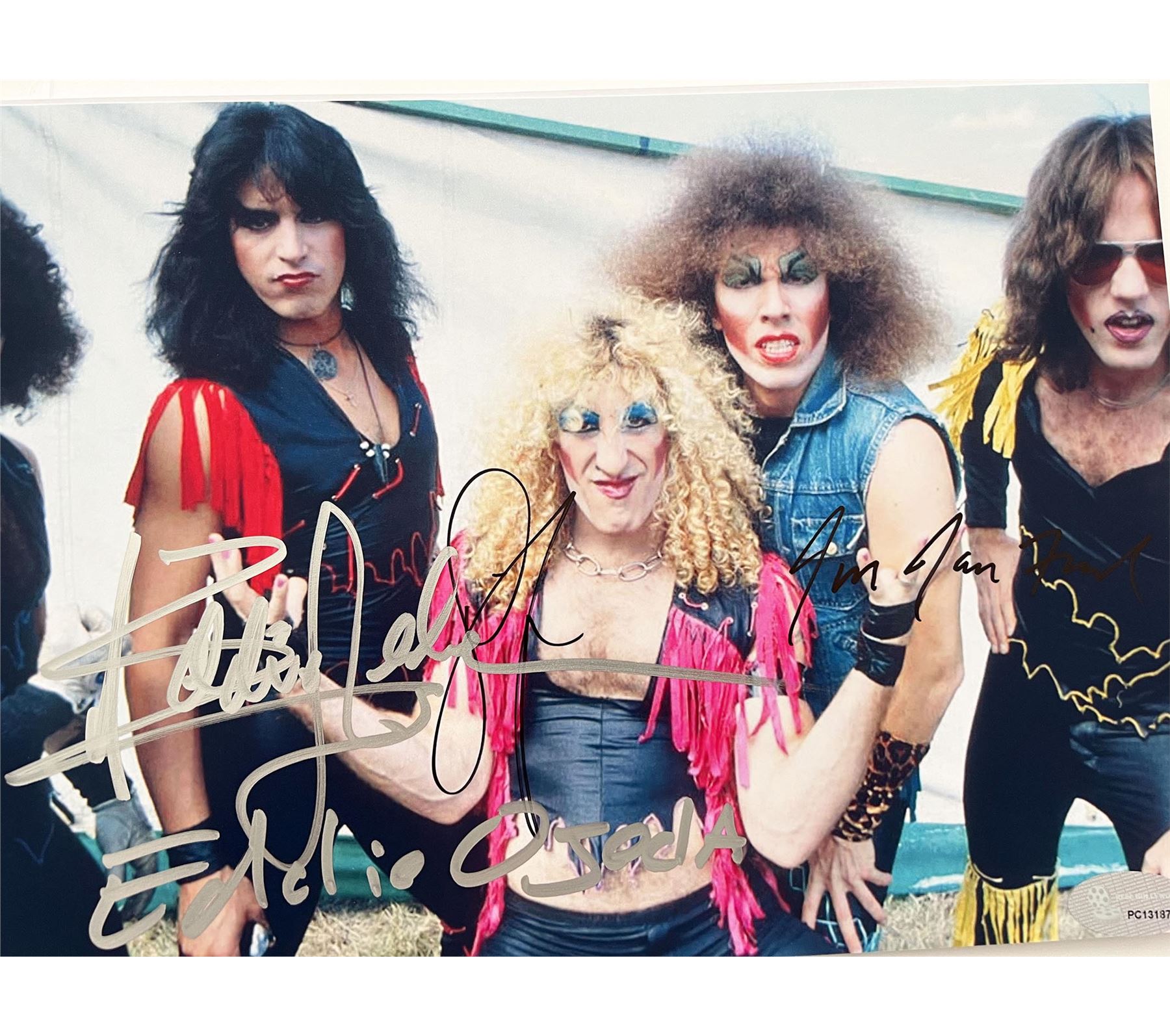 Twisted Sister band signed photo autographed by Eddie Ojeda, Jay Jay French and Dee Snider. 8x10 inches