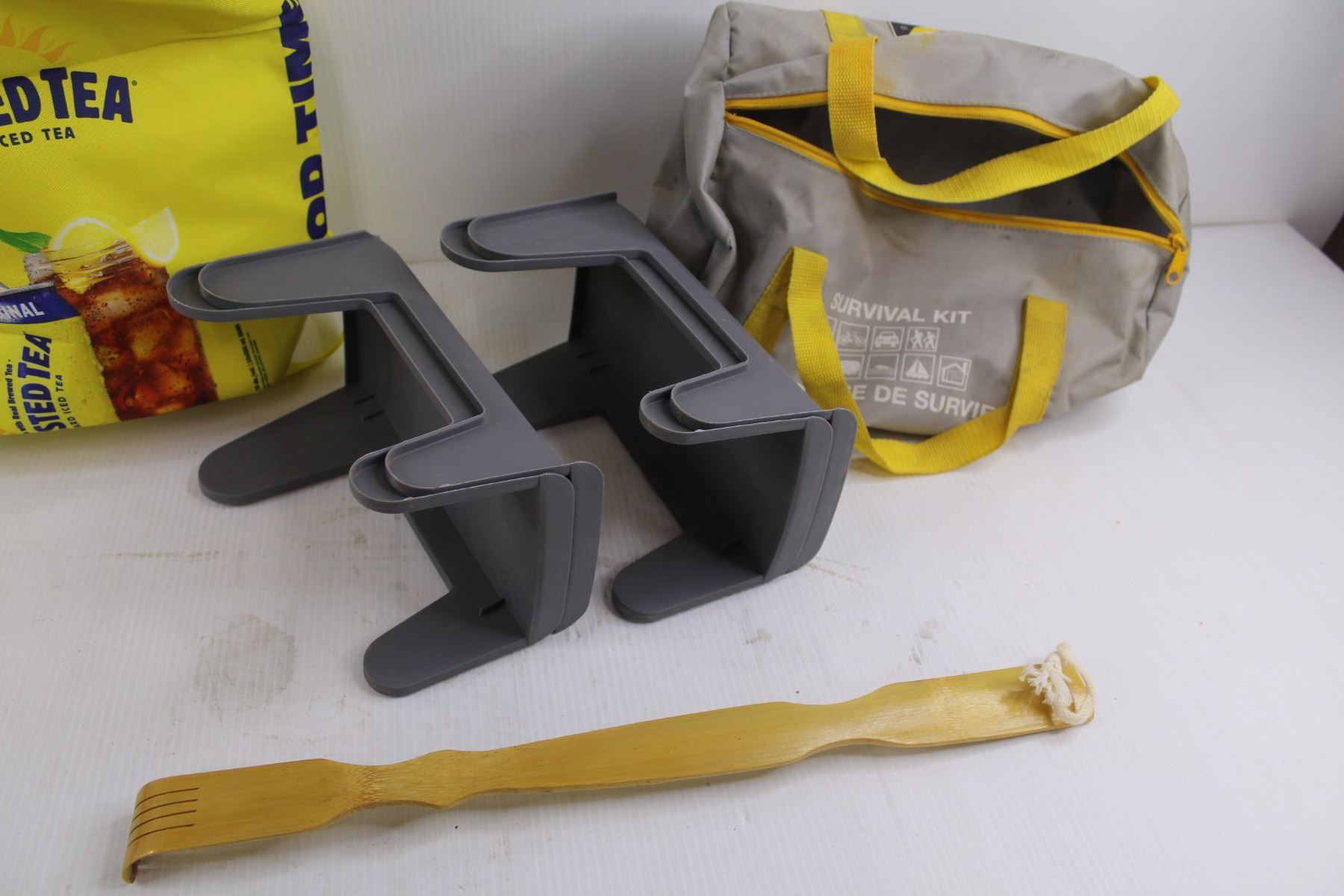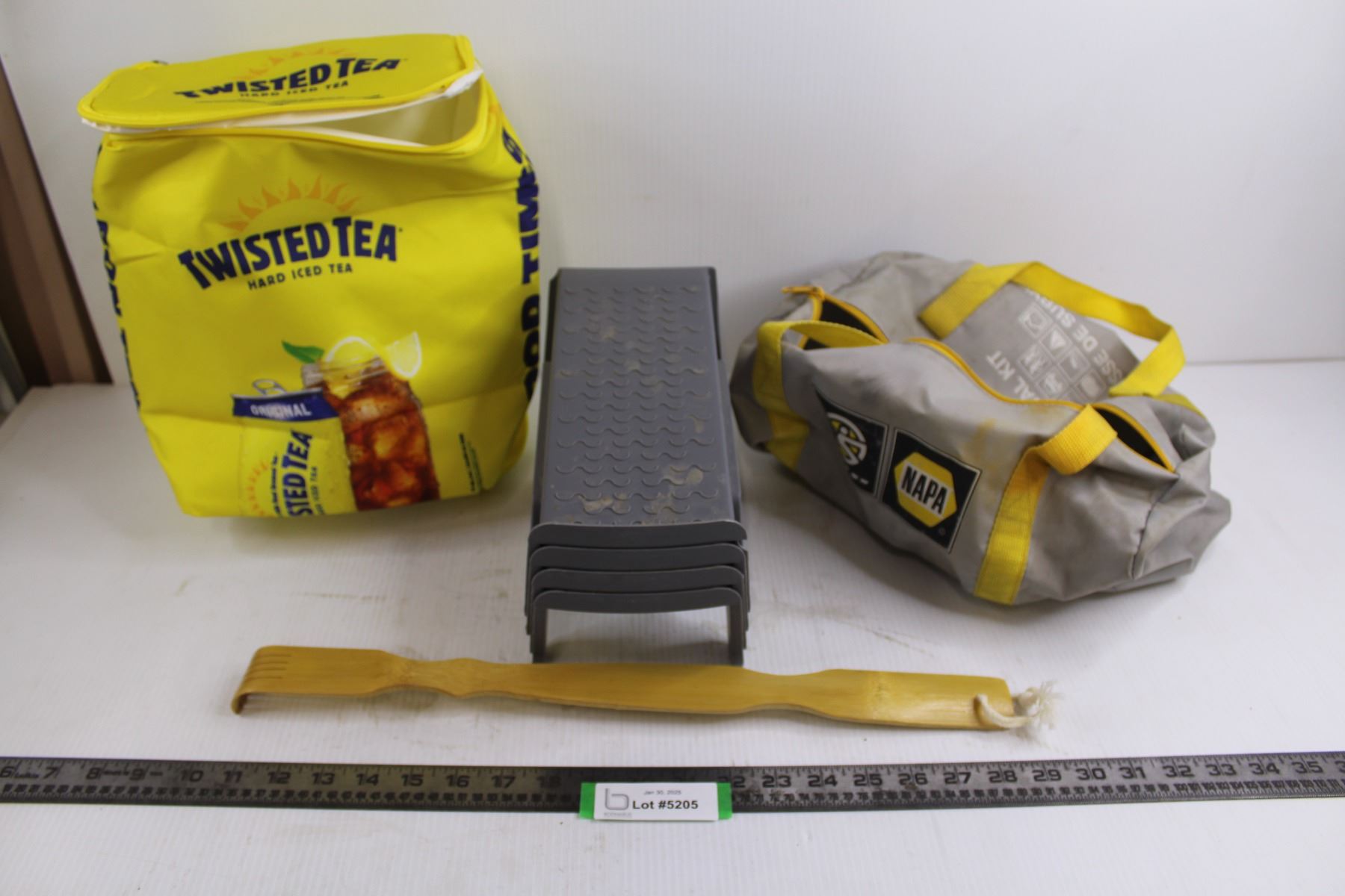 Twisted Tea Thermal Tote, Napa Survival Kit Bag - Empty, (4) Shoe Tying Platforms, Back Scratcher