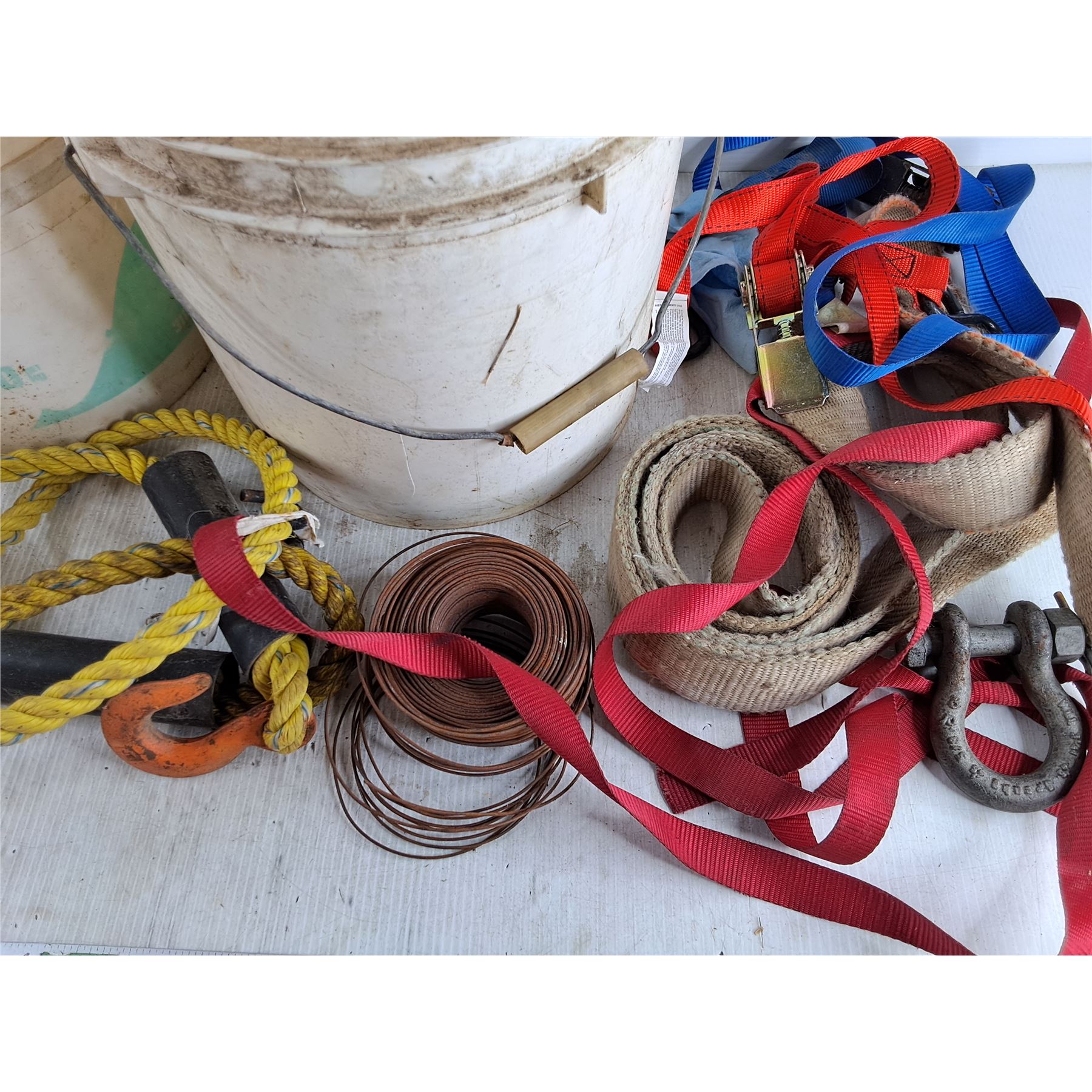 Twisted Tow Rope, Ratchet Straps, Shackles, Wire, Chain, Plastic Buckets, - Cannot Ship