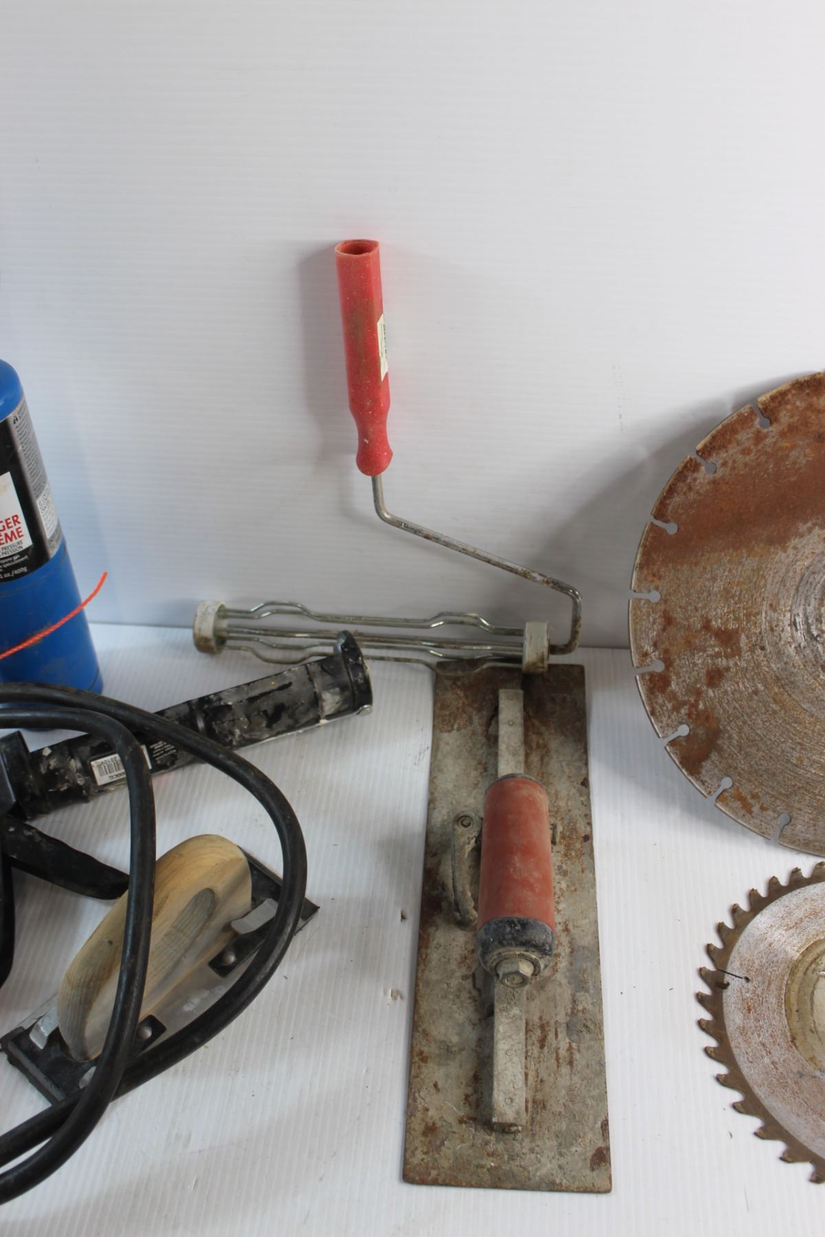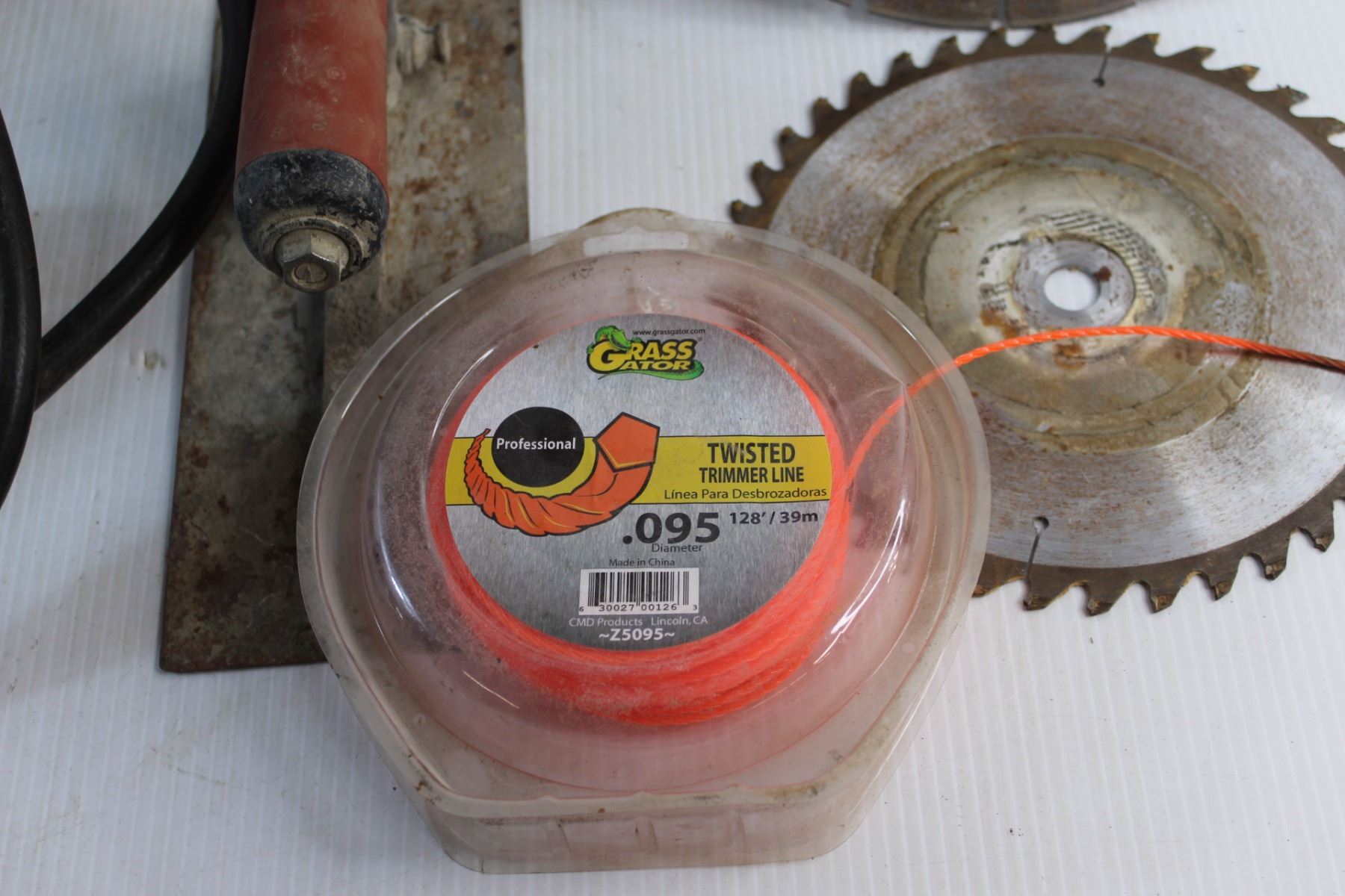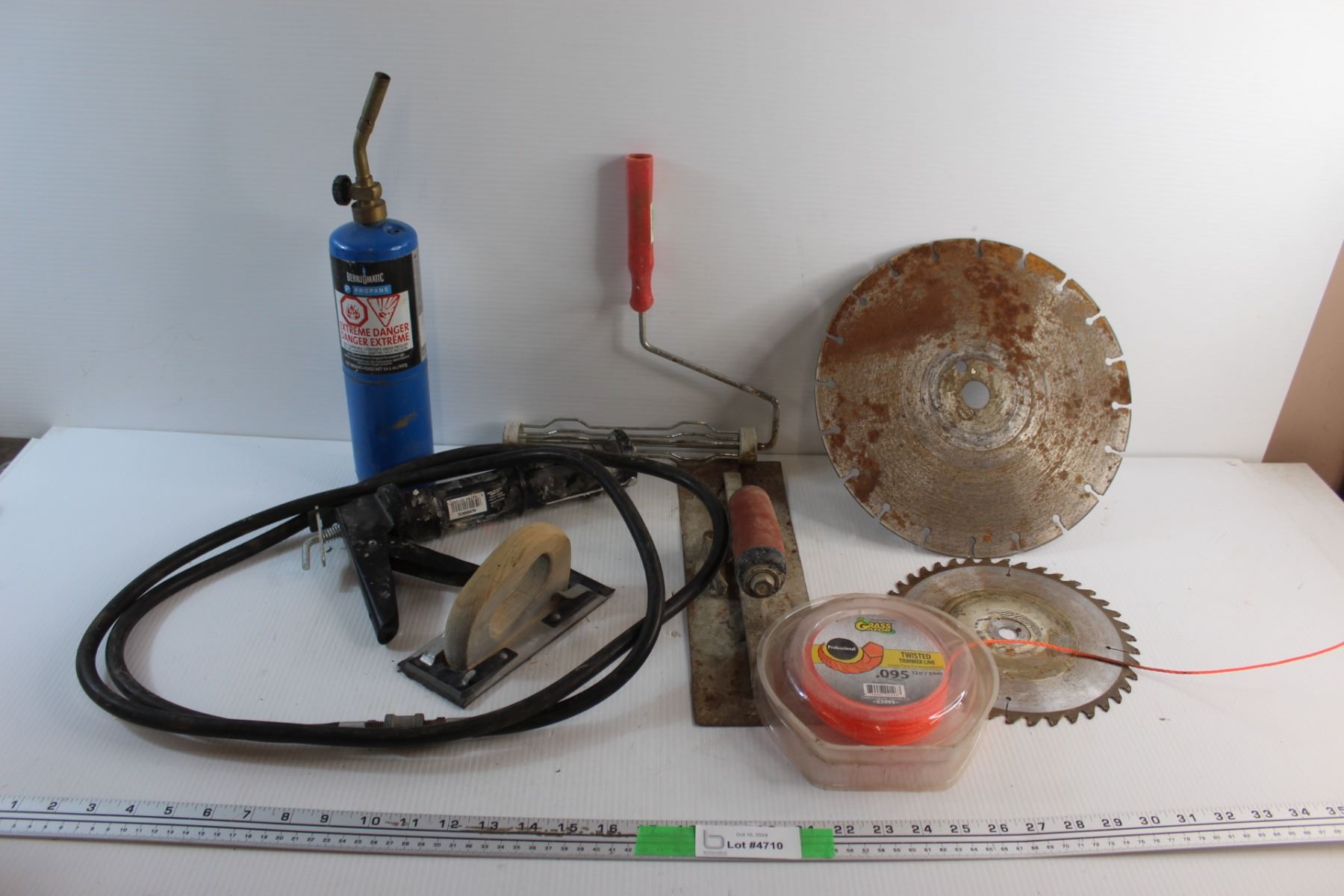 Twisted Trimmer Line, Propane Torch, Sanding Block, Saw Disks and Assorted Items