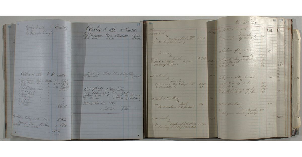 1866 This lot consists of two handwritten ledgers from the Umatilla Stage Lines of Boise, Idaho. Hailey Stage Line - Umatilla Stage Line In 1865, Hailey bought out partner William Ish to become sole owner of Umatilla to Boise Basin Line. In 1866 purchased Walla Walla and Boise Stage Company. At the same time, took over the U. S. mail subcontract. These ledgers list all the comings and goings and the shipments handled by the company for the years 1866 and 1869. One of the ledgers is missing its front cover and has some bindery issues, the other has both covers but could use some restoration work. The entries in both are clear, appearing as if they were written yesterday. This is a great lot with a nice look at a part of every day workings of an express company. Lynn Langdon Collection - HKA#65292