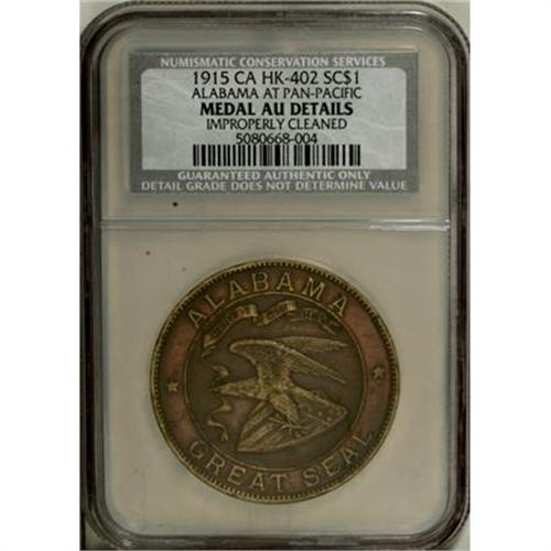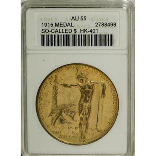 <B>Two 1915 Pan-Pac Expo Certified So-Called Dollars</B></I> Bronze. A pair of 1915 Pan-Pacific Exposition so-called dollars, <B>HK-401, AU55 ANACS; </B></I>and<B> HK-402, AU Details NCS.</B></I><BR><BR><b>Shipping:</b> Coins & Currency (<a target="_blank" href="http://www.heritageauctions.com/common/shipping.php">view shipping information</a>)