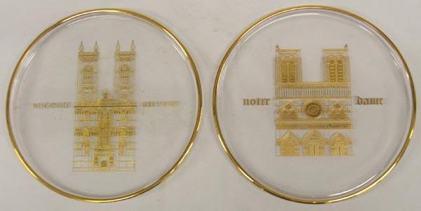 Two 1971 Orrefors Annual Plates, 1 is a 1970 Limited Edition Plate entitled Notre Dame from the series Historical Churches of the World and measures approx. 9.75'' and the other plate is a 1971 Limited Edition Plate entitled Westminster Abbey from the series Historical Churches of the World and measures approx. 9.5''. SHI $25.