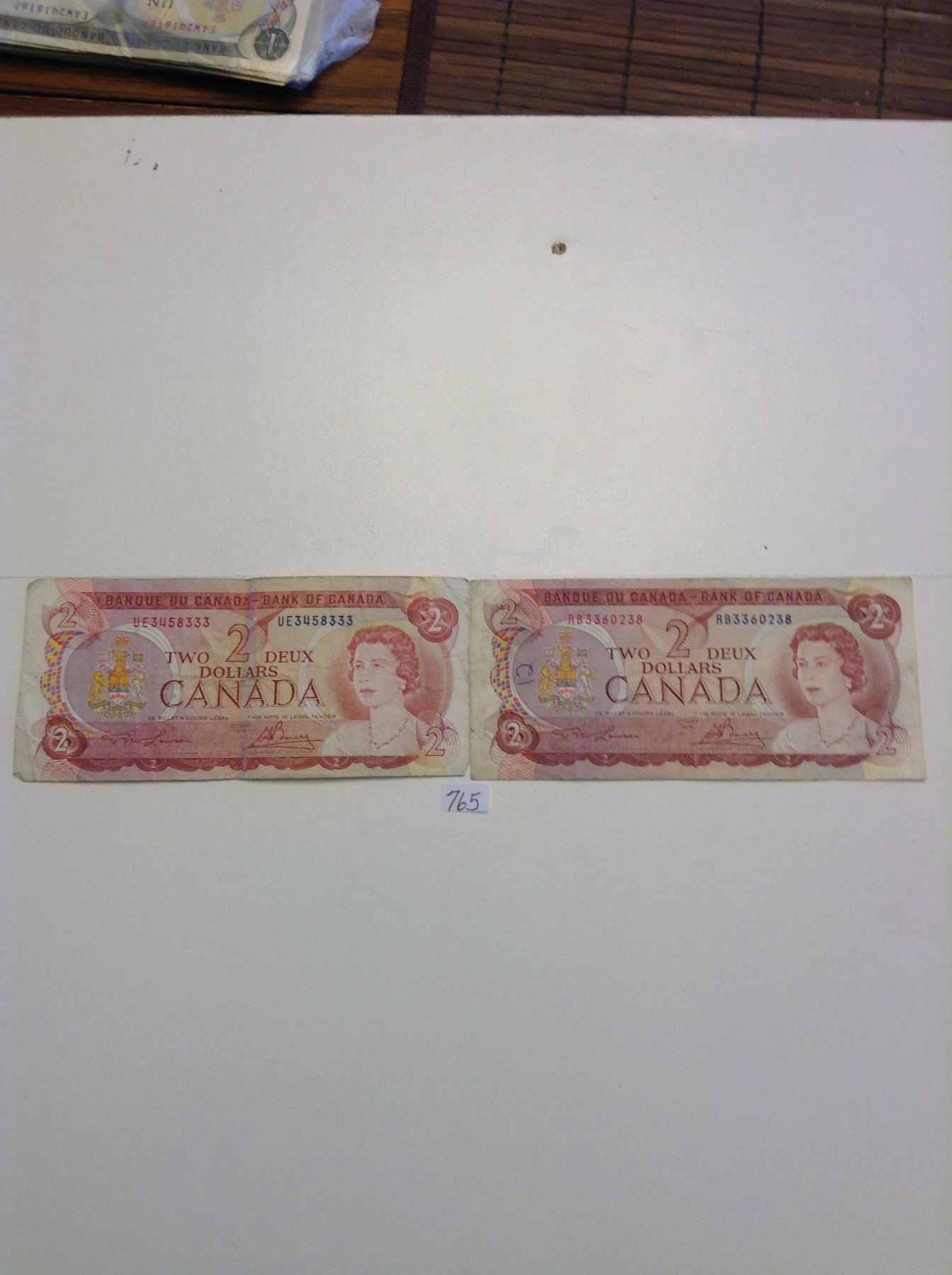 Two 1974 Canada $2.00 Dollar Bills - Circulated