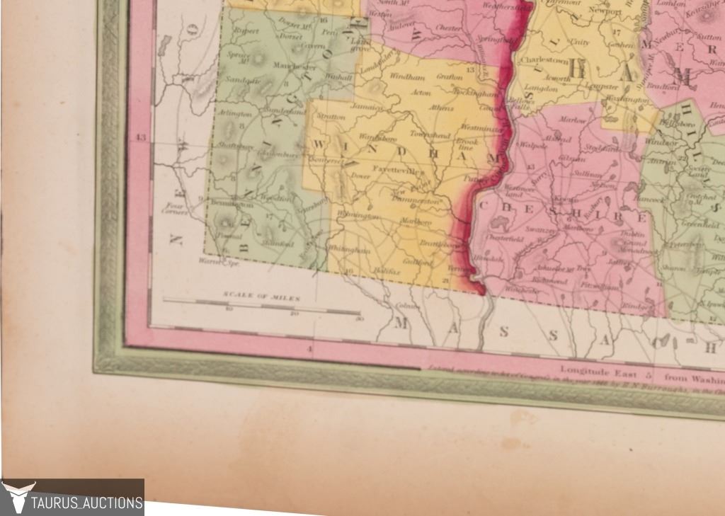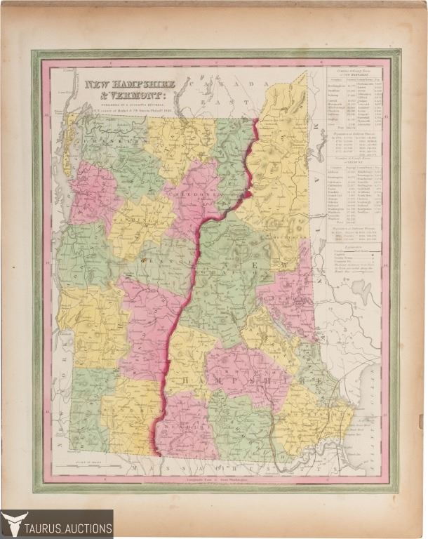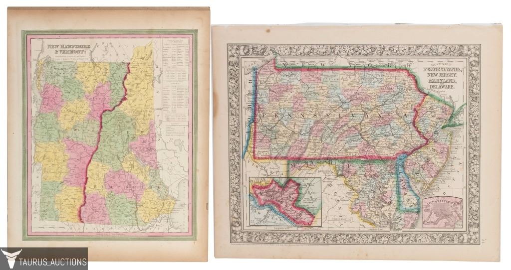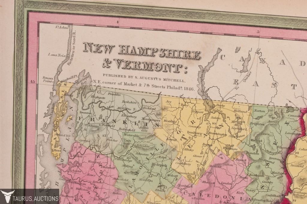 Item/Description: Set of two hand-colored Atlas maps by S. Augustus Mitchell. Includes: New Hampshire & Vermont, from the New Universal Atlas 1846.