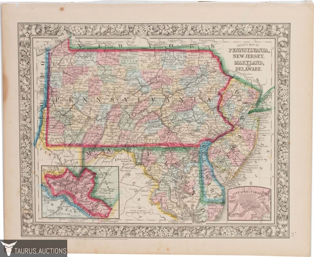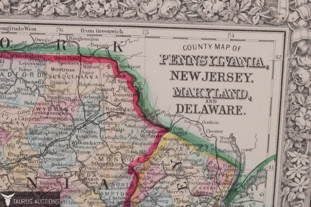 County Map Of Pennsylvania, New Jersey, Maryland, And Delaware. From Mitchell's New General Atlas 1864.