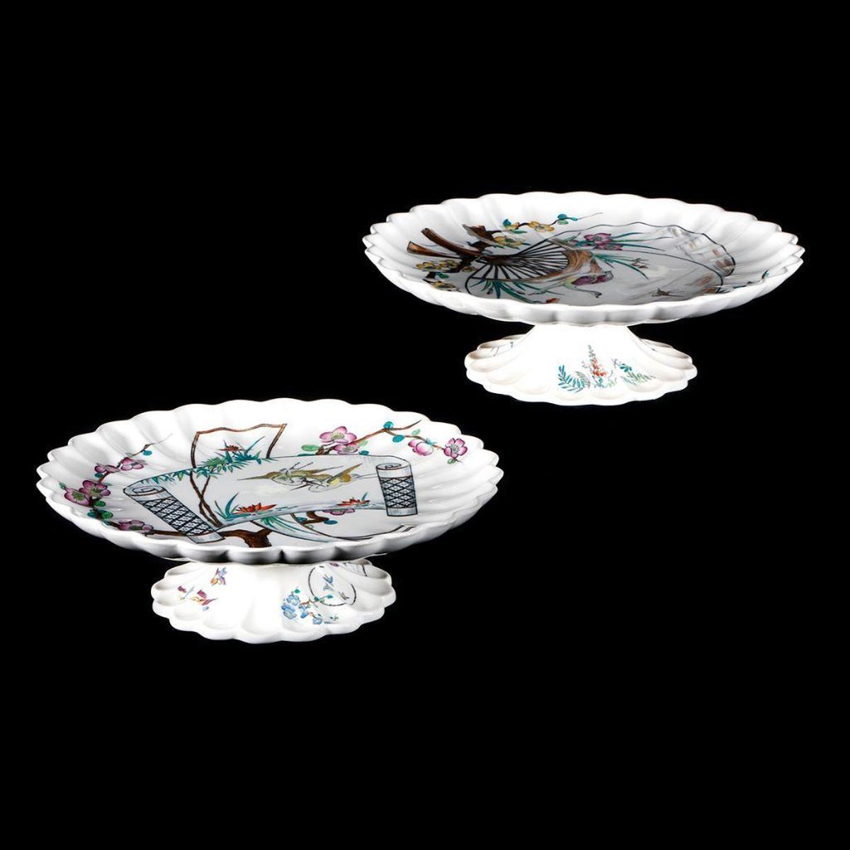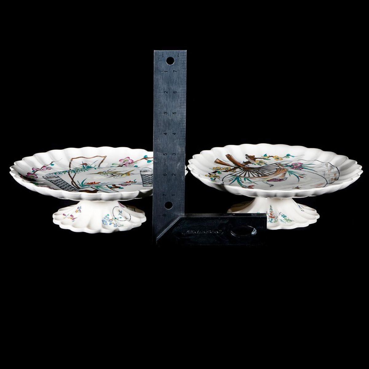 Two 19th century painted porcelain Copeland stemmed serving plates each measuring 2 3/4 inches high x 9.