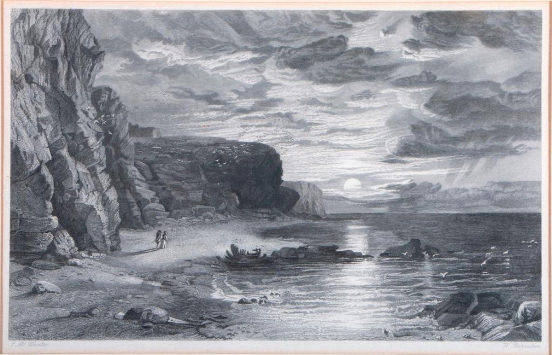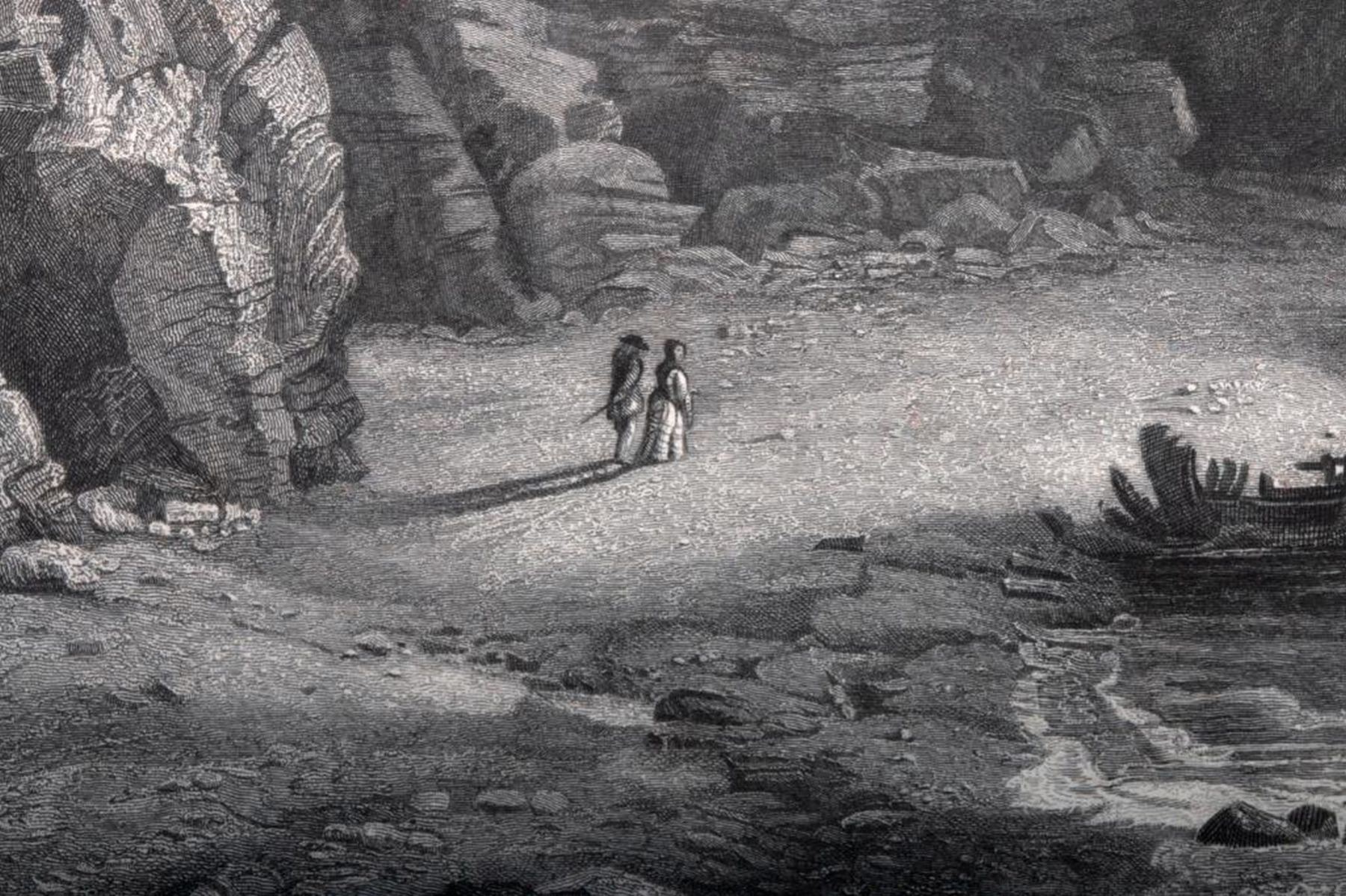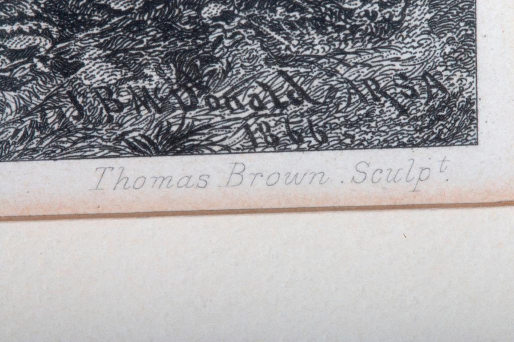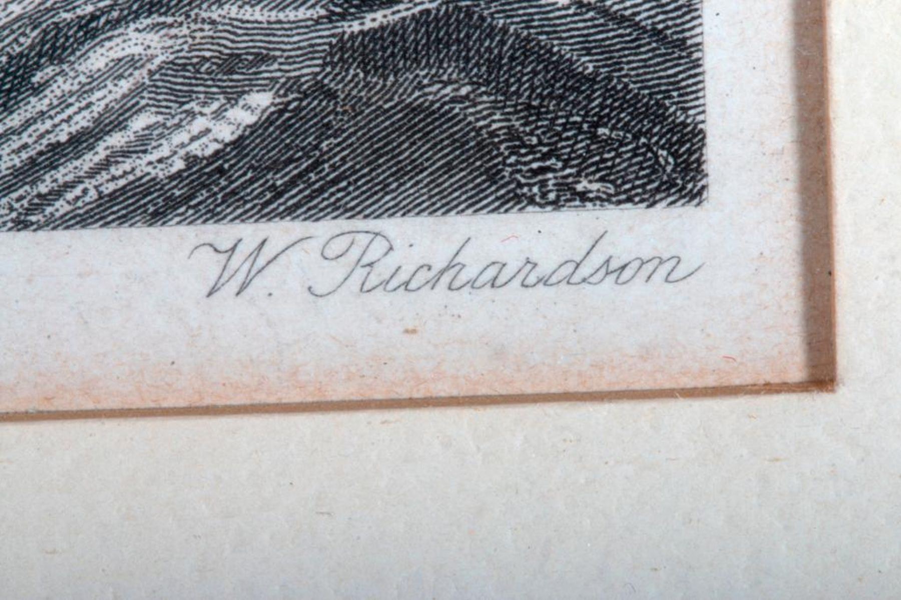 Two early 19th century English etchings. Image size: 7 inches high x 10 1/2. Frame size: 16 inches high x 19.