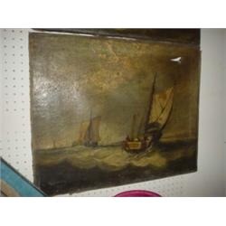 Two 19th century unframed seascape oils on canvas, 17x21" in need of restoration