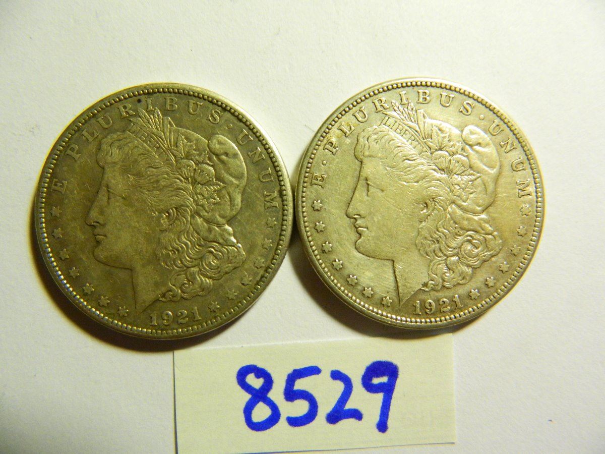 Two (2) 1921-S Silver Morgan Dollars, Both One Money, 90% Silver