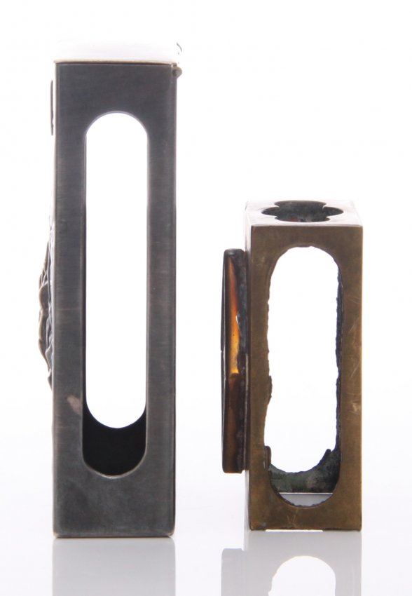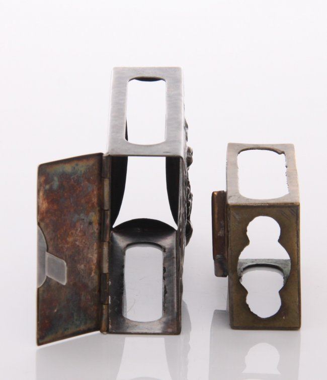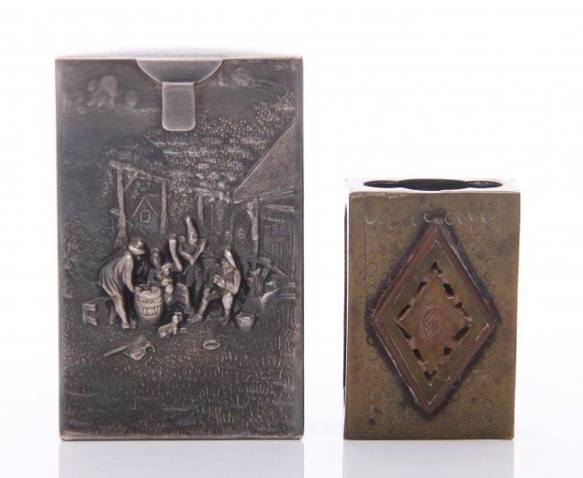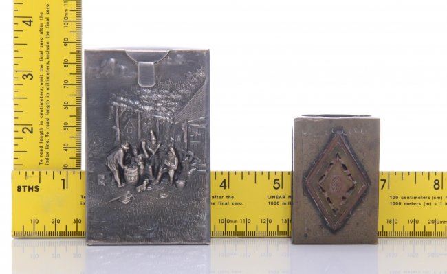 Two(2) Antique matchbox cases. SIZE: see attached ruler photo. Photos are part of the description representing the condition report and can be used for authentication prior to the sale date. Pangaea Auctions urges Bidder's to view all attached photos in detail.