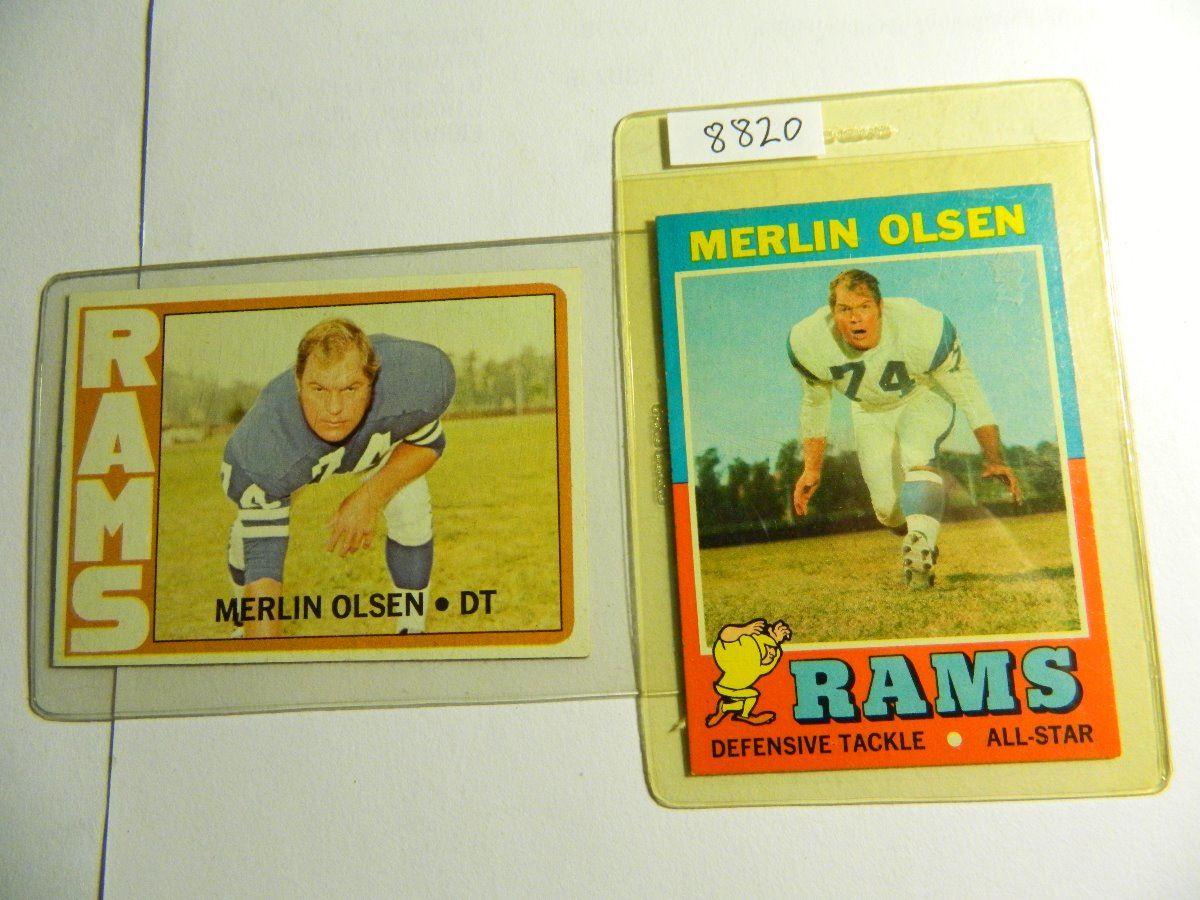 Two (2) Merlin Olsen (Rams, DT) Football cards from 1971 and 1972, both one money