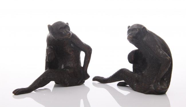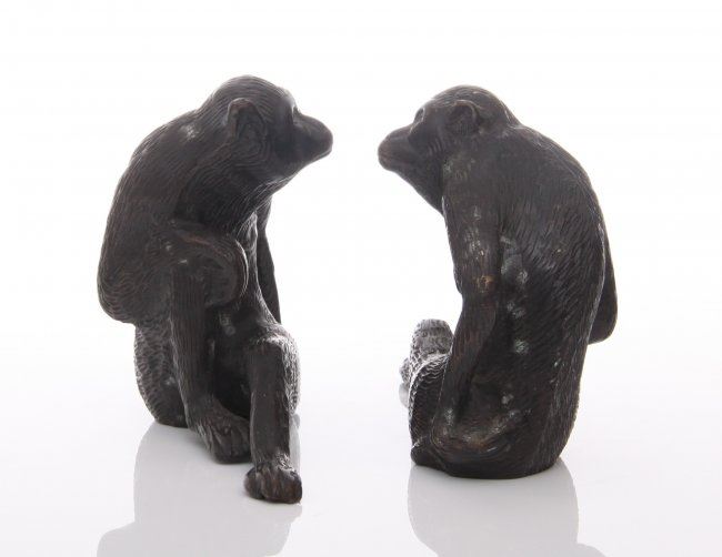 Two(2) Vintage bronze monkey paperweights / bookends. SIZE: see attached ruler photo. Photos are part of the description representing the condition report and can be used for authentication prior to the sale date. Pangaea Auctions urges Bidder's to view all attached photos in detail.