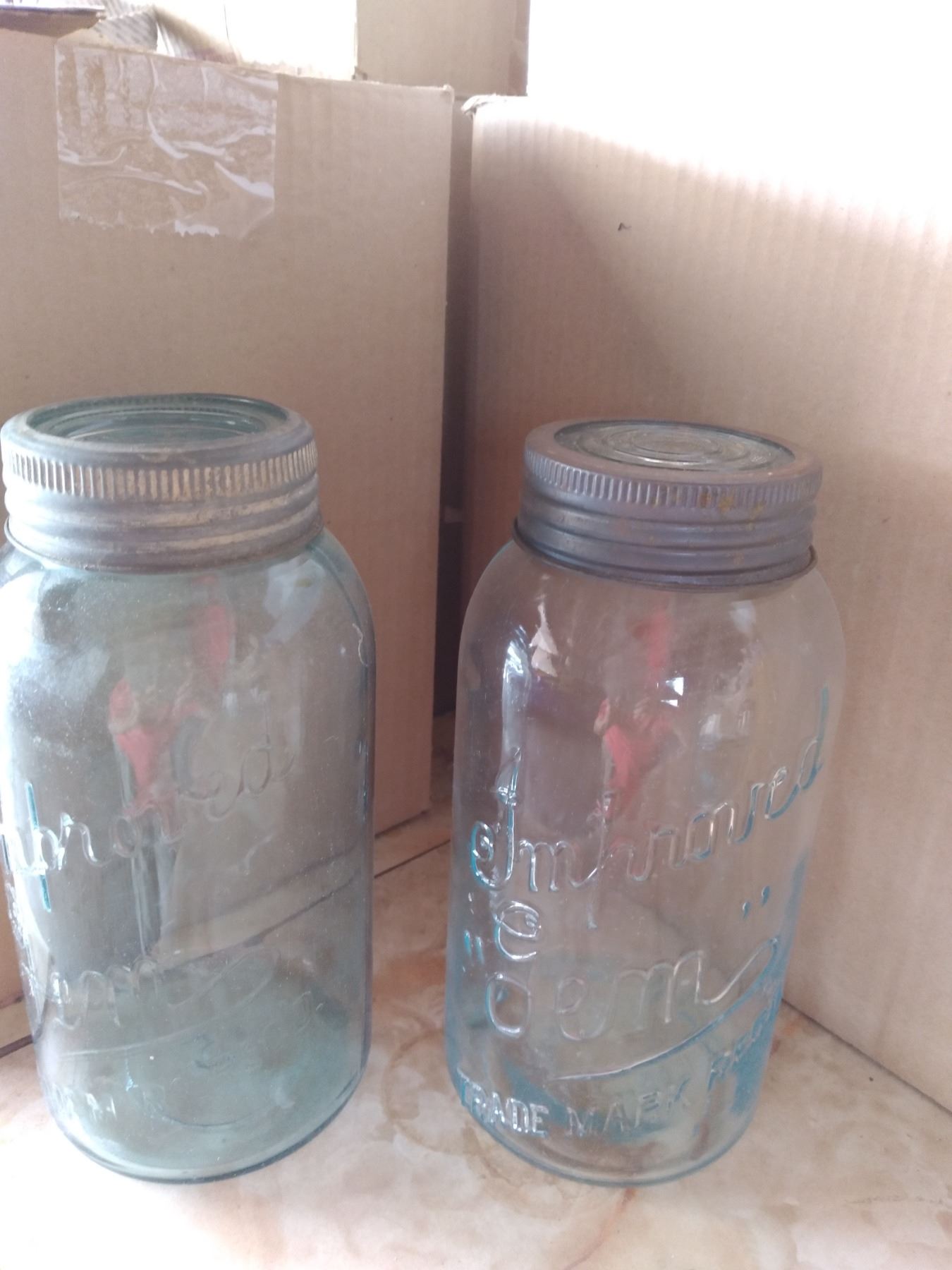 Two 2 quart Gem Jars in Blue Glass