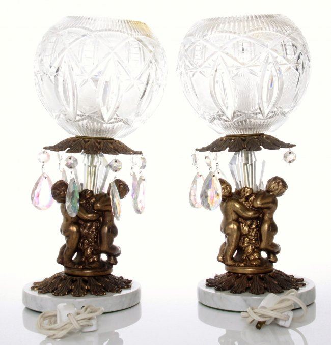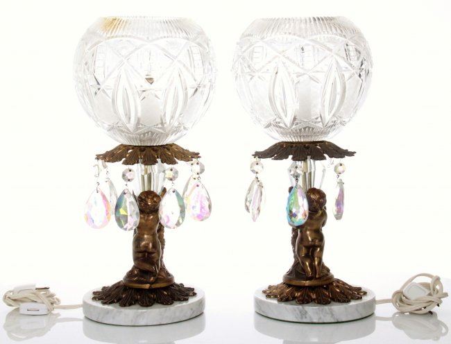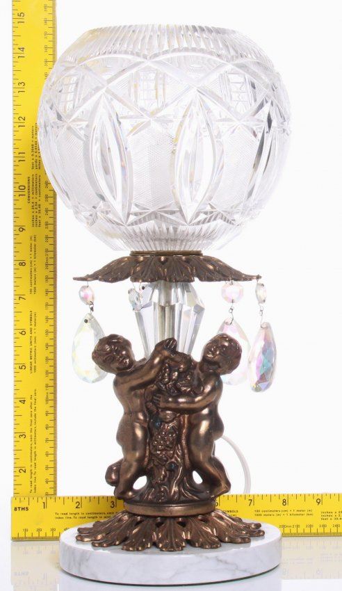 Two(2) vintage globe lamps with cherubs and a marble base. SIZE: see attached ruler photo. Photos are part of the description representing the condition report and can be used for authentication prior to the sale date. Pangaea Auctions urges Bidder's to view all attached photos in detail.