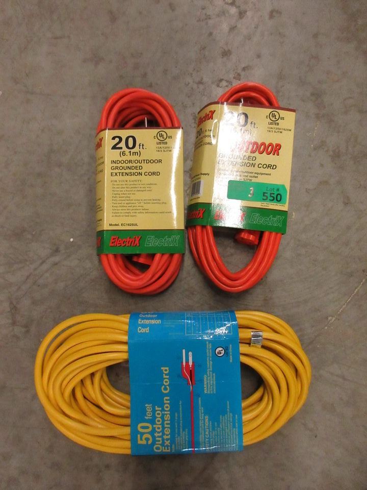 Two 20 Foot & One 50 Foot Outdoor Extension Cord