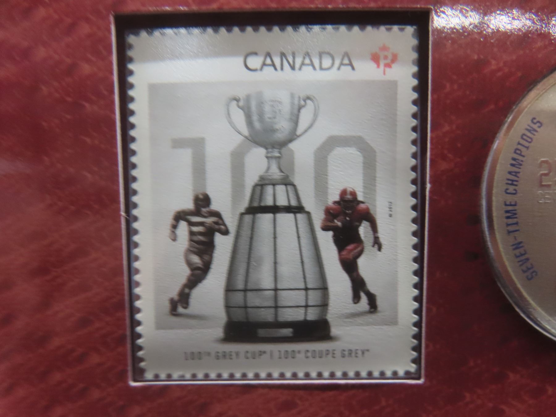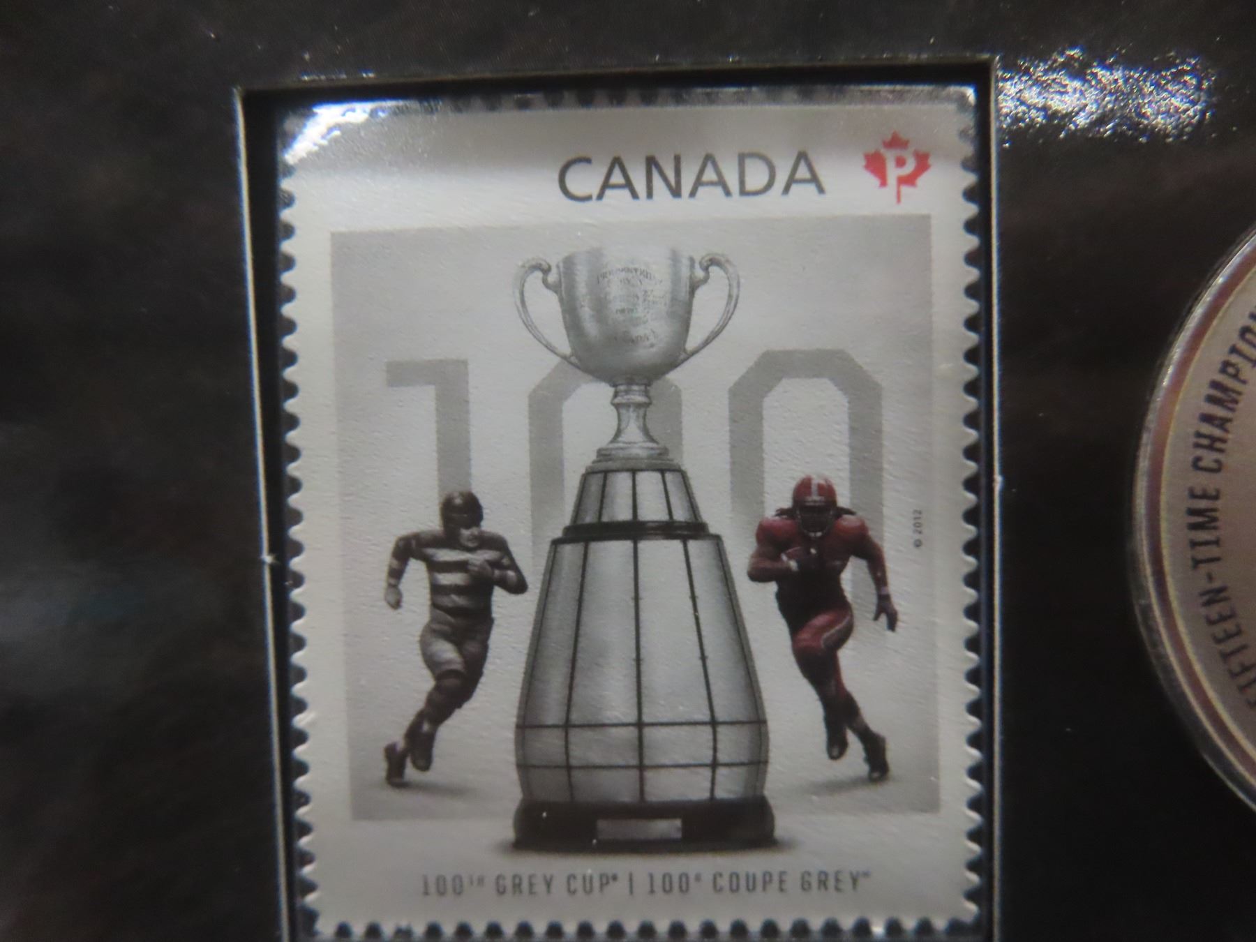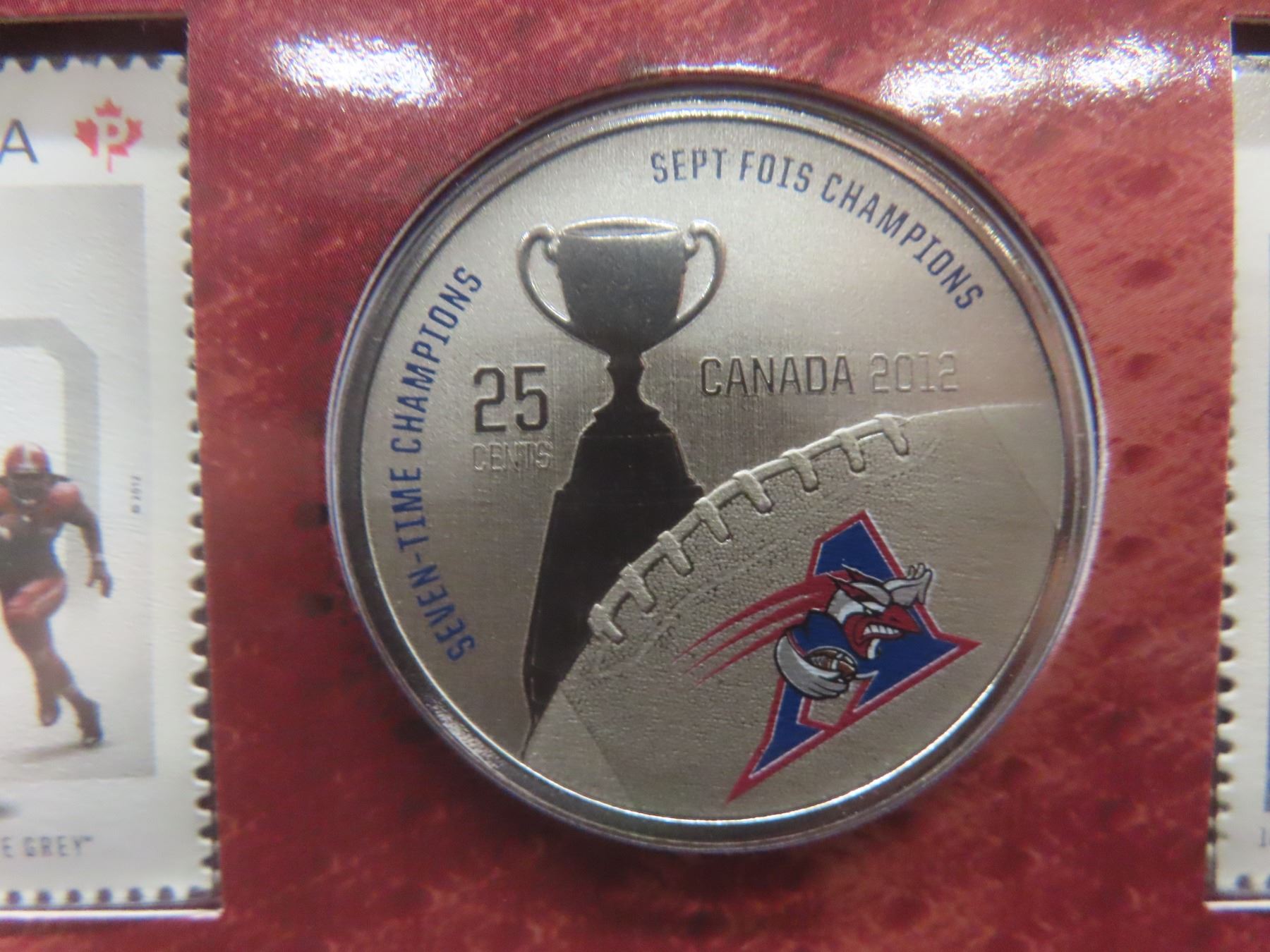 Two 2012 Canadian Grey Cup Coin And Stamp Sets: Hamilton Tiger-Cats And Montreal Alouettes
