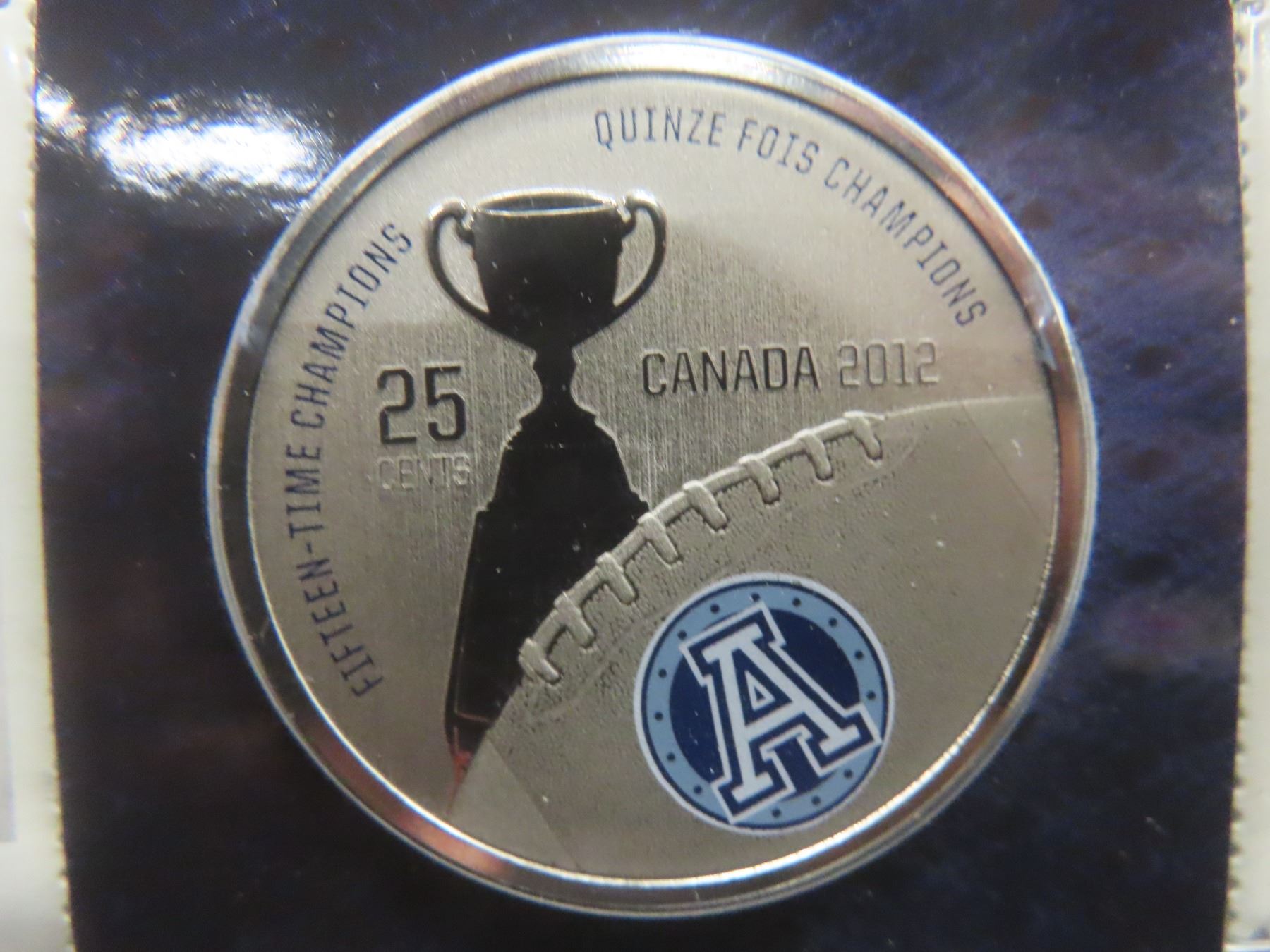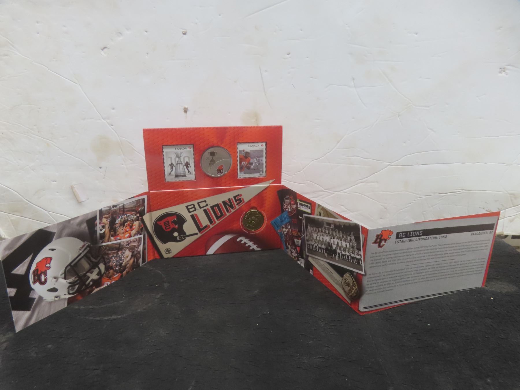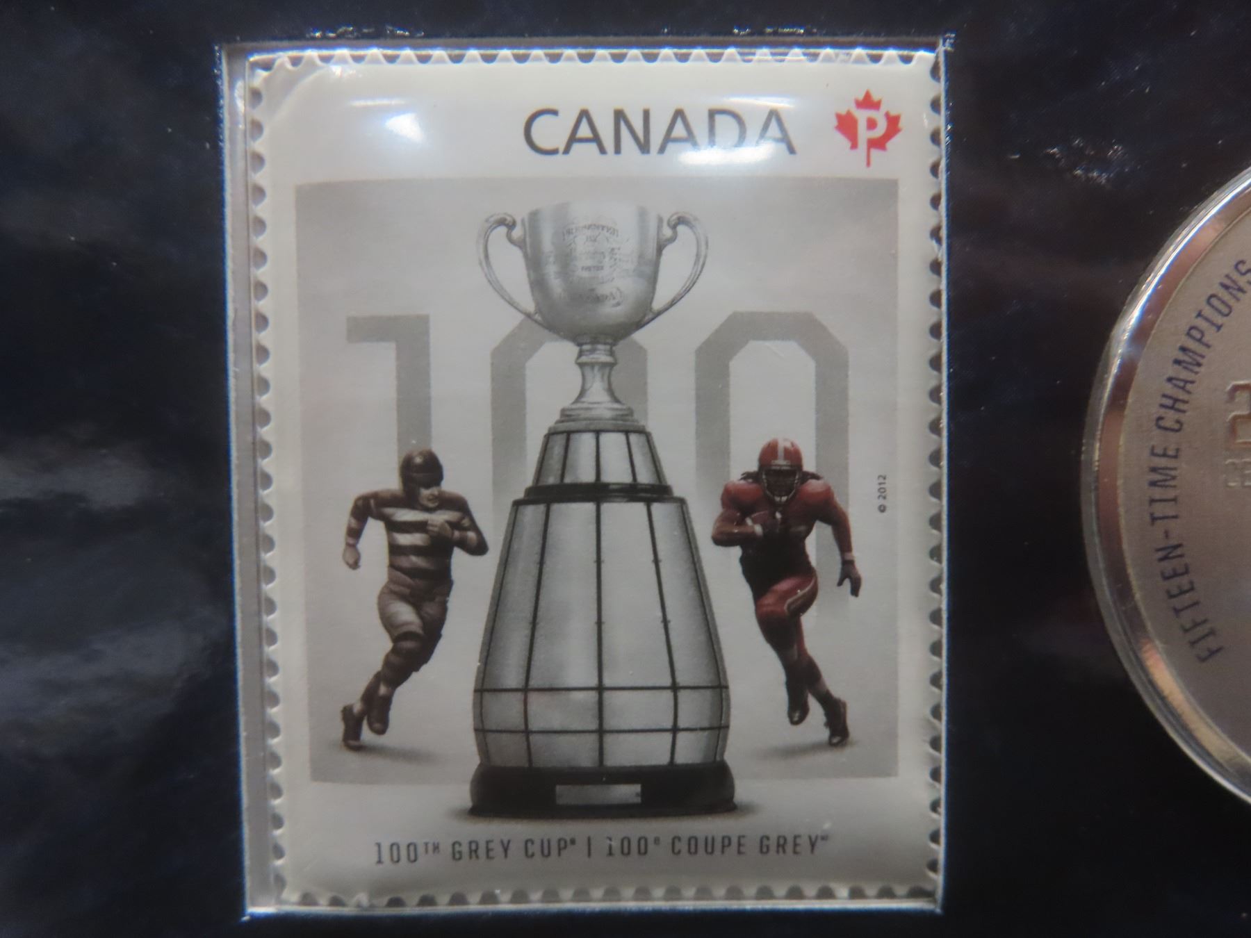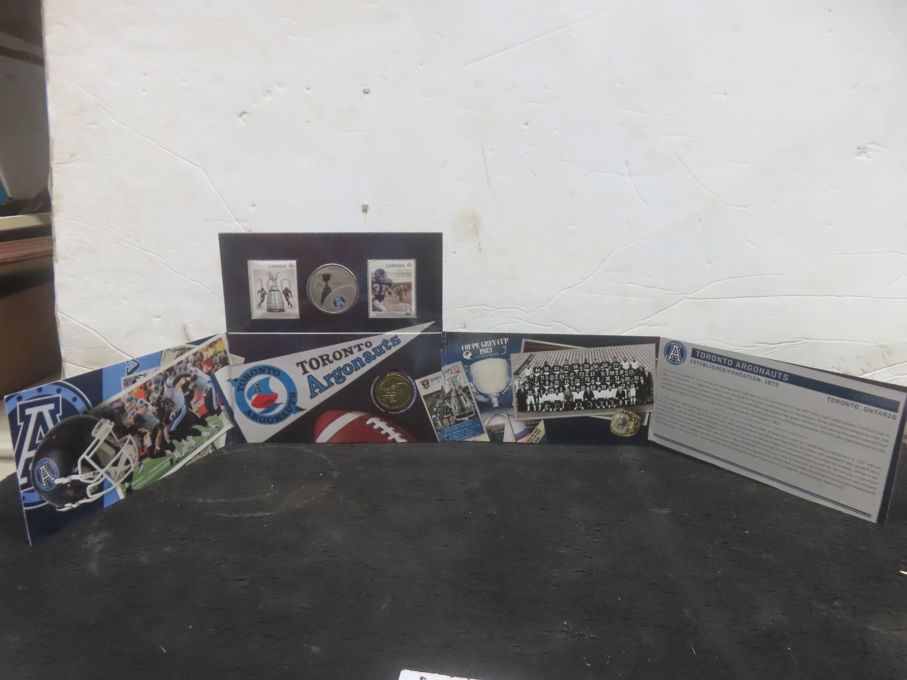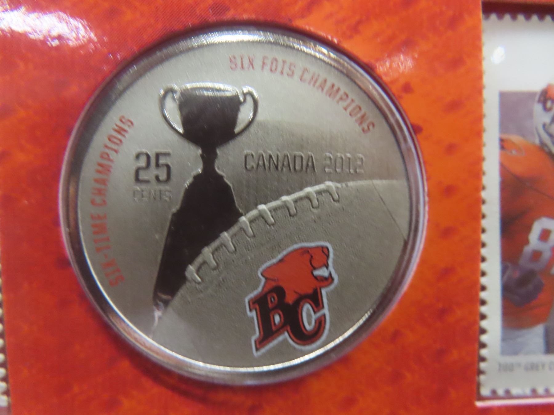 Two 2012 Canadian Grey Cup Coin And Stamp Sets: Toronto Argonauts And B.C. Lions