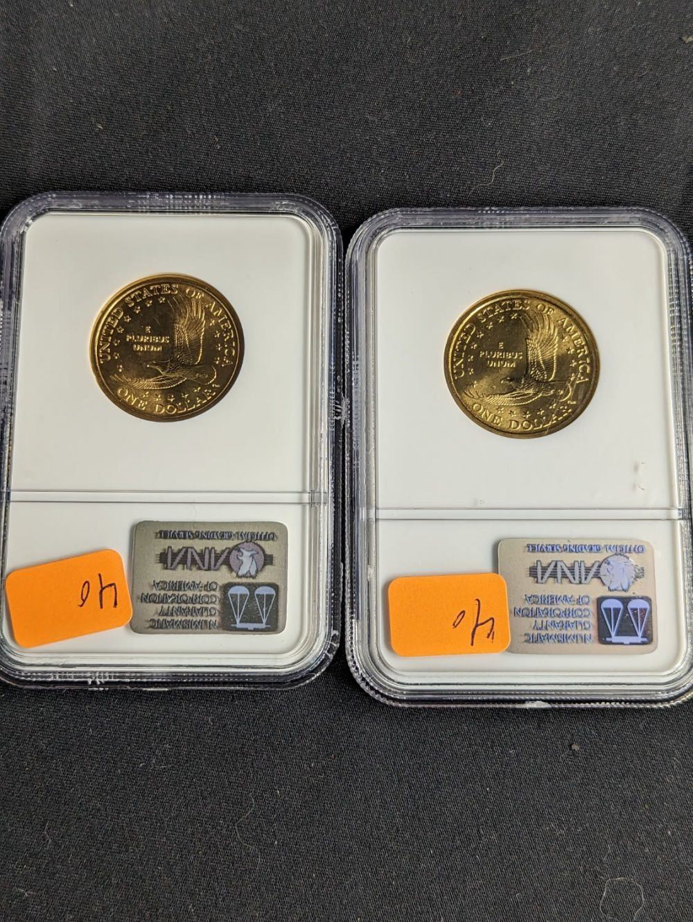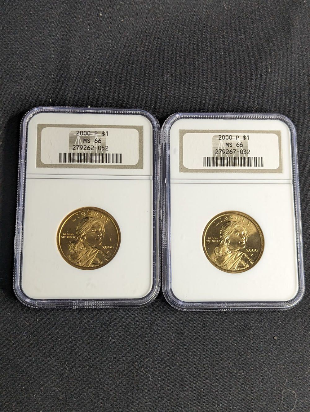 Two (2ct) 2000 Sacajawea P $1 NGC Graded MS66. These two Sacajawea Dollars have Nice Luster and Great Eye appeal& nbsp;