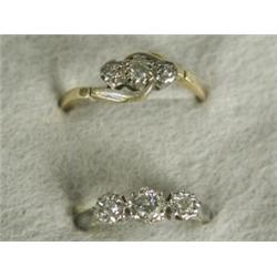 Two 3-stone diamond rings set in 18ct gold, sizes N 1/2 and O Est. 80/120...