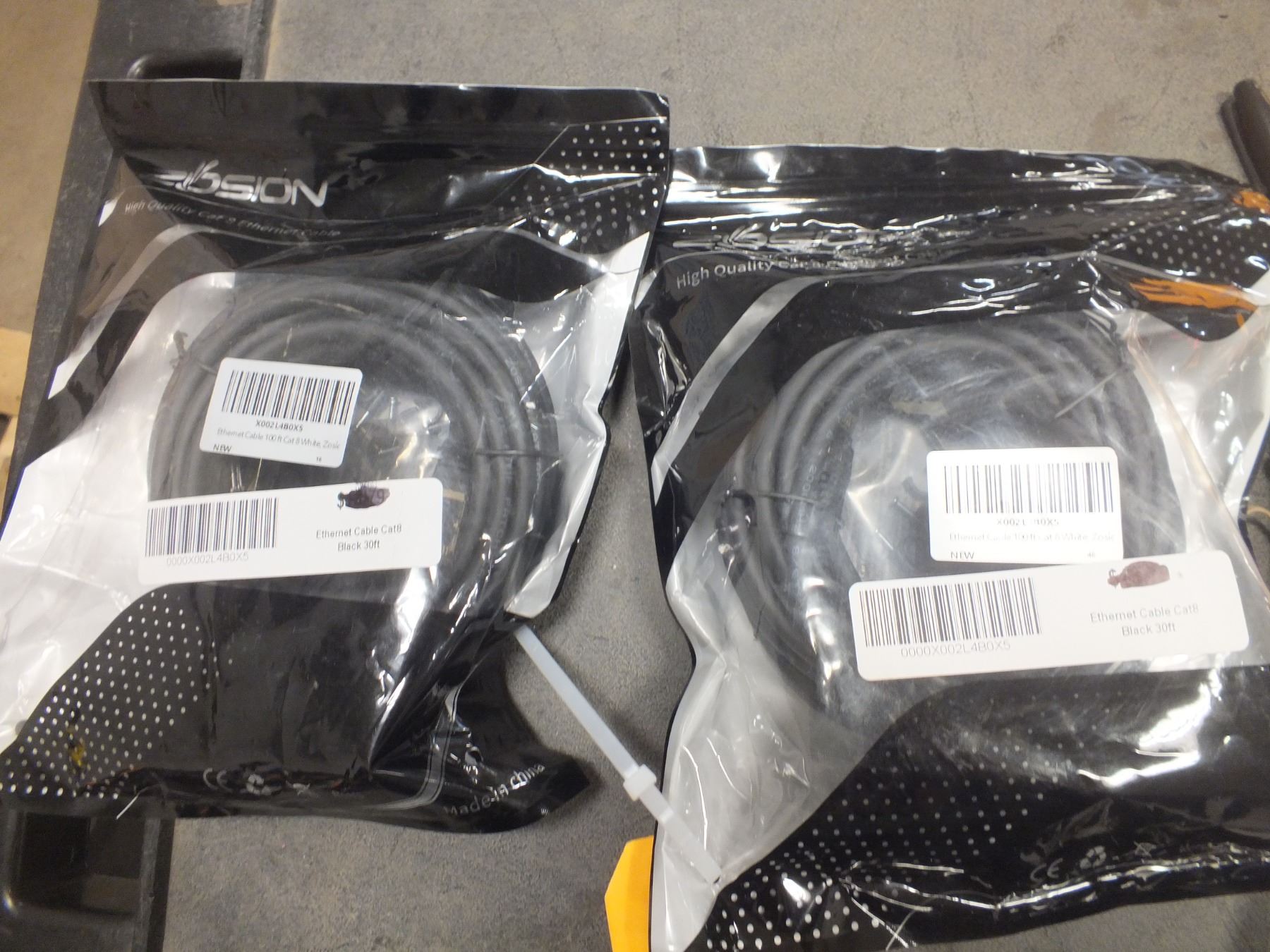 Two 30ft Black Ethernet Cords...new...sold as is / where is..