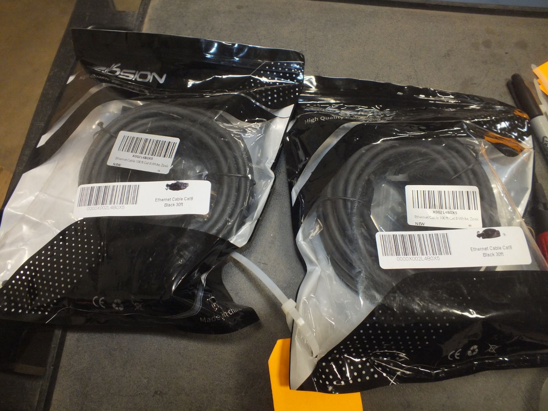 Two 30ft Black Ethernet Cords...new...sold as is / where is..