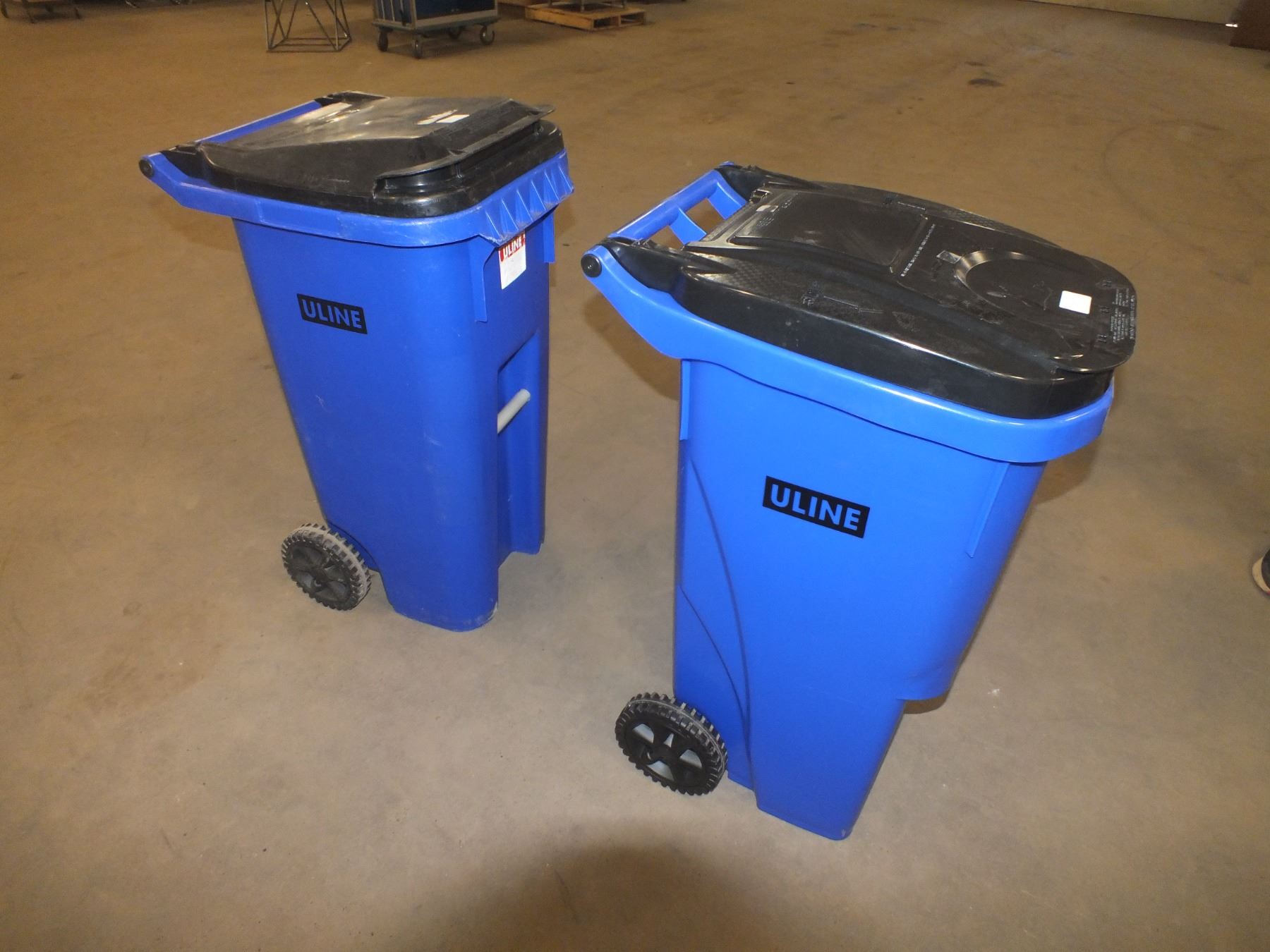 Two 35 gal Garbage Cans On wheels...sold as is / where is...used