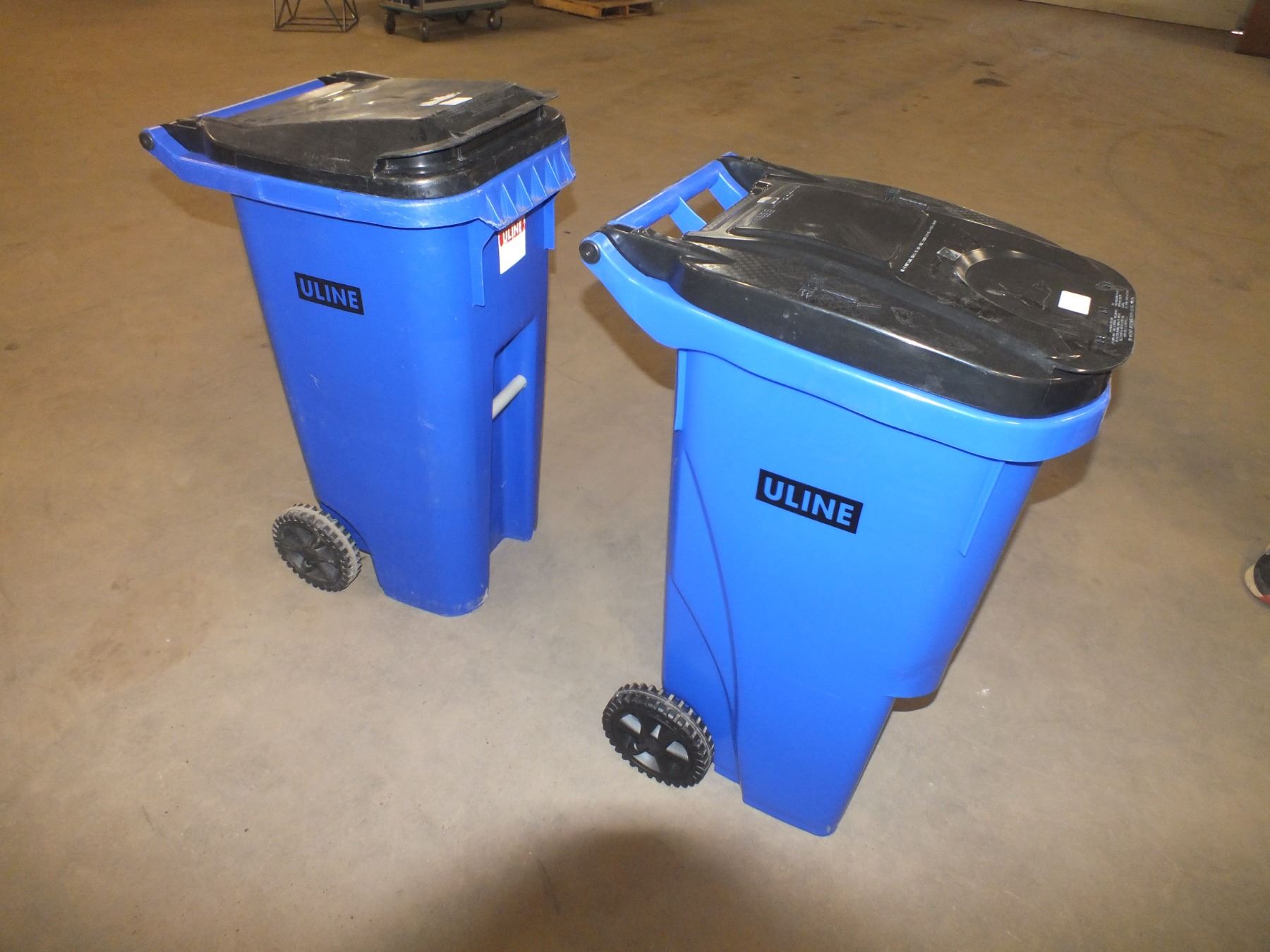 Two 35 gal Garbage Cans On wheels...sold as is / where is...used