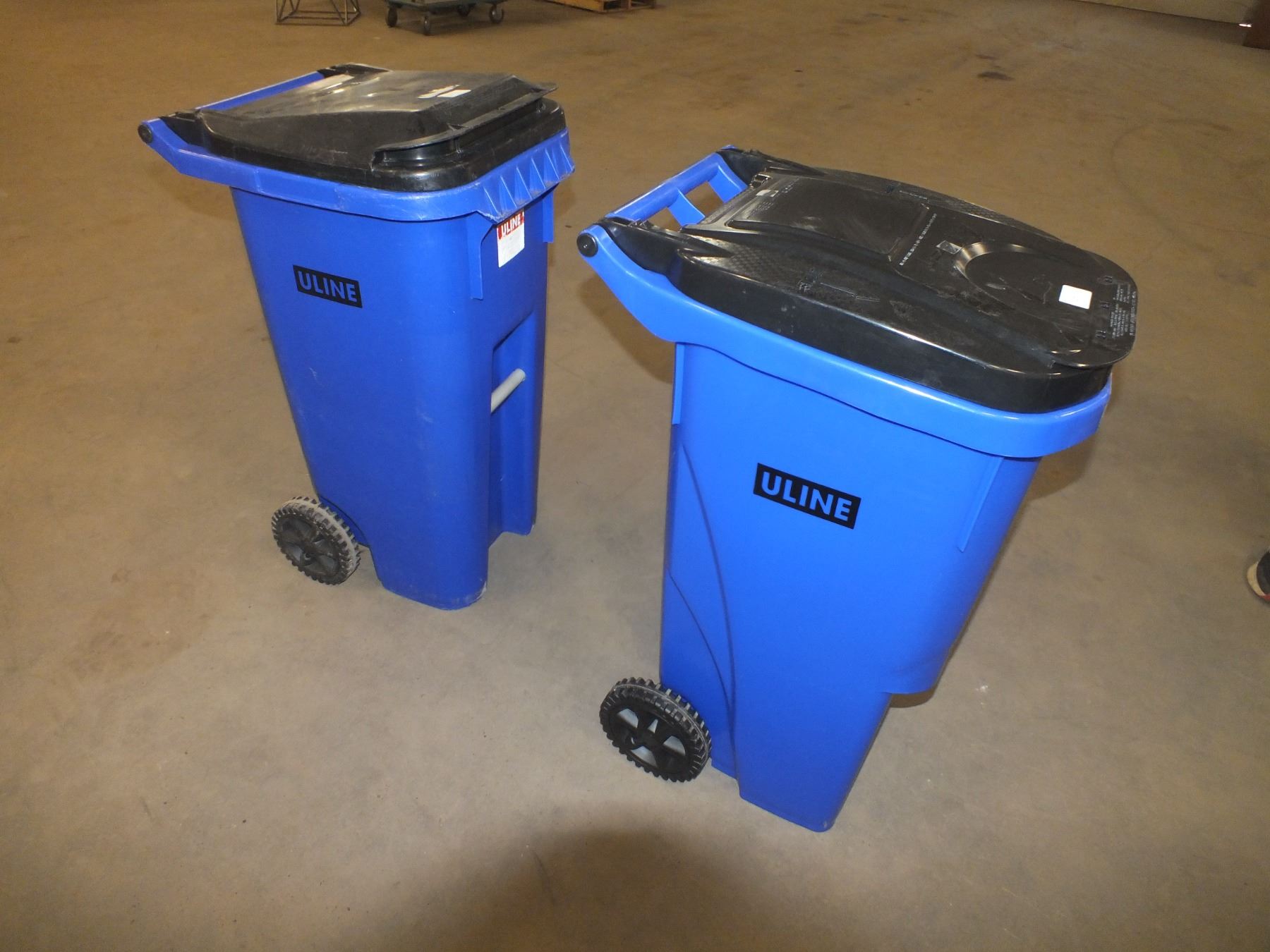 Two 35 gal Garbage Cans On wheels...sold as is / where is...used