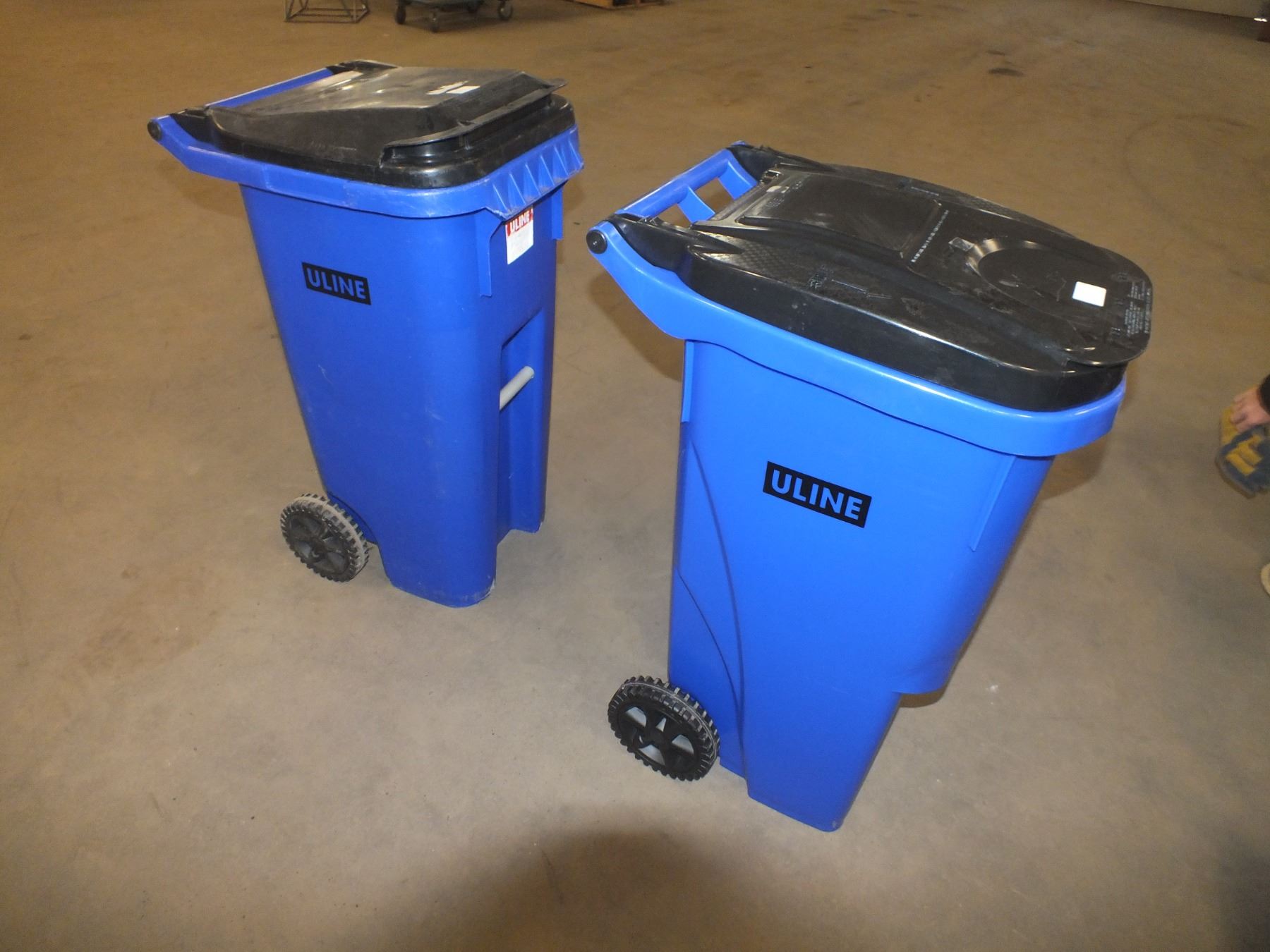 Two 35 gal Garbage Cans On wheels...sold as is / where is...used