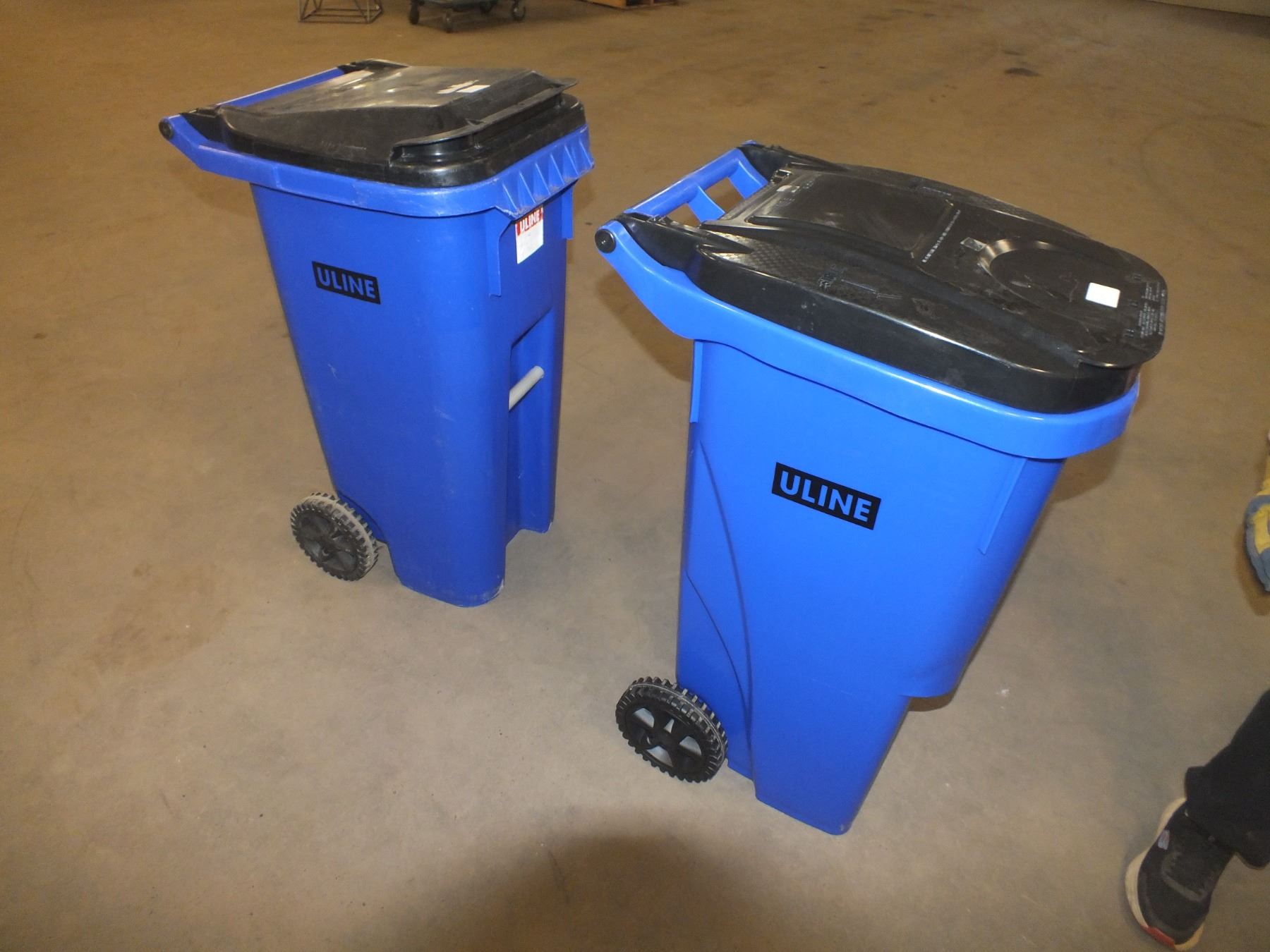 Two 35 gal Garbage Cans On wheels...sold as is / where is...used