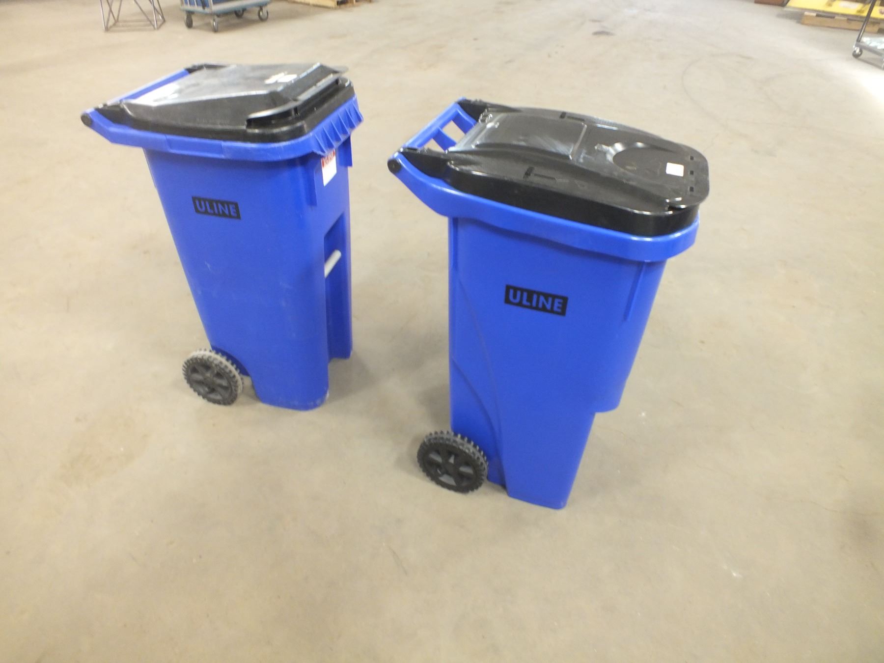 Two 35 gal Garbage Cans On wheels...sold as is / where is...used