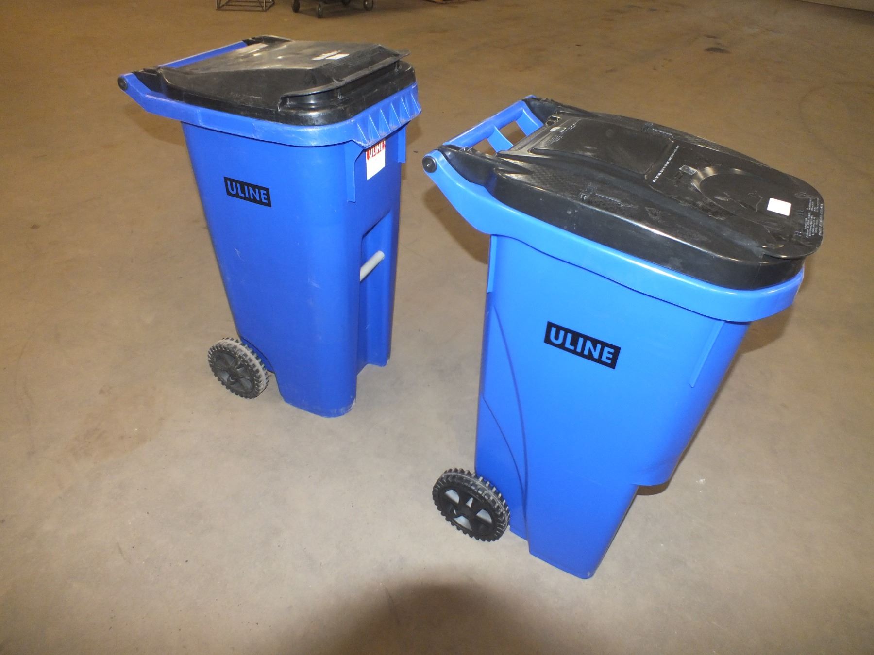 Two 35 gal Garbage Cans On wheels...sold as is / where is...used